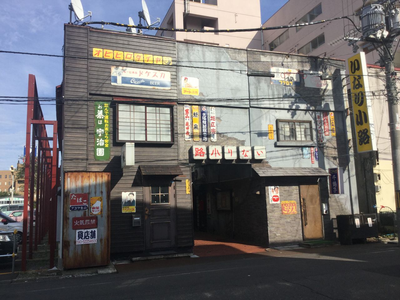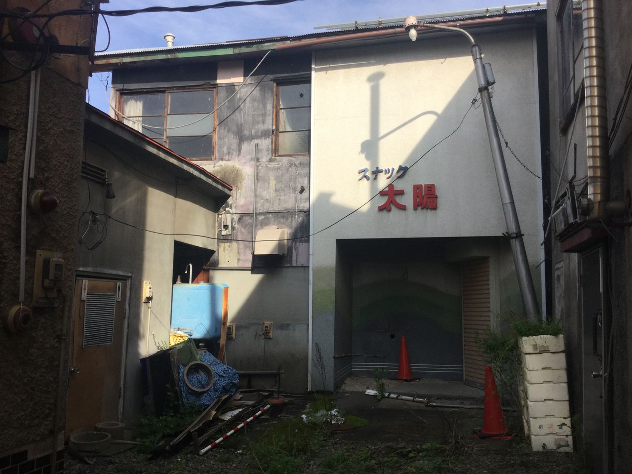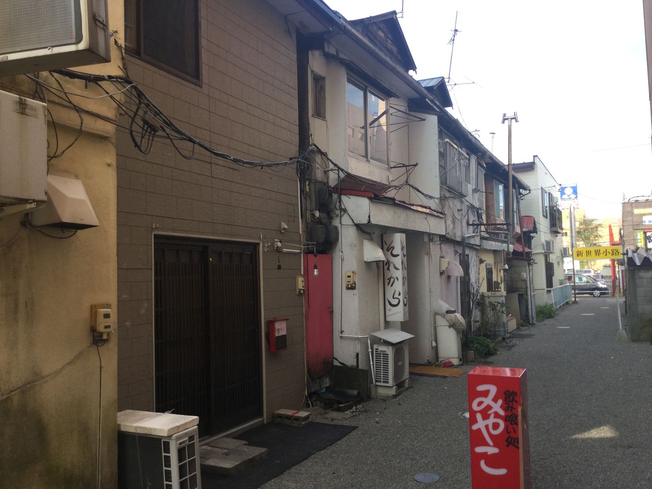 名門通りから西に一本ズレた通りを北に進むと、左手にスナック路地の名残りが。向い側は新しいアパート、裏手は駐車場に囲まれており、昔のこの辺りの街の景色はどんな感じだったのかと想像を巡らせずにはいられません。