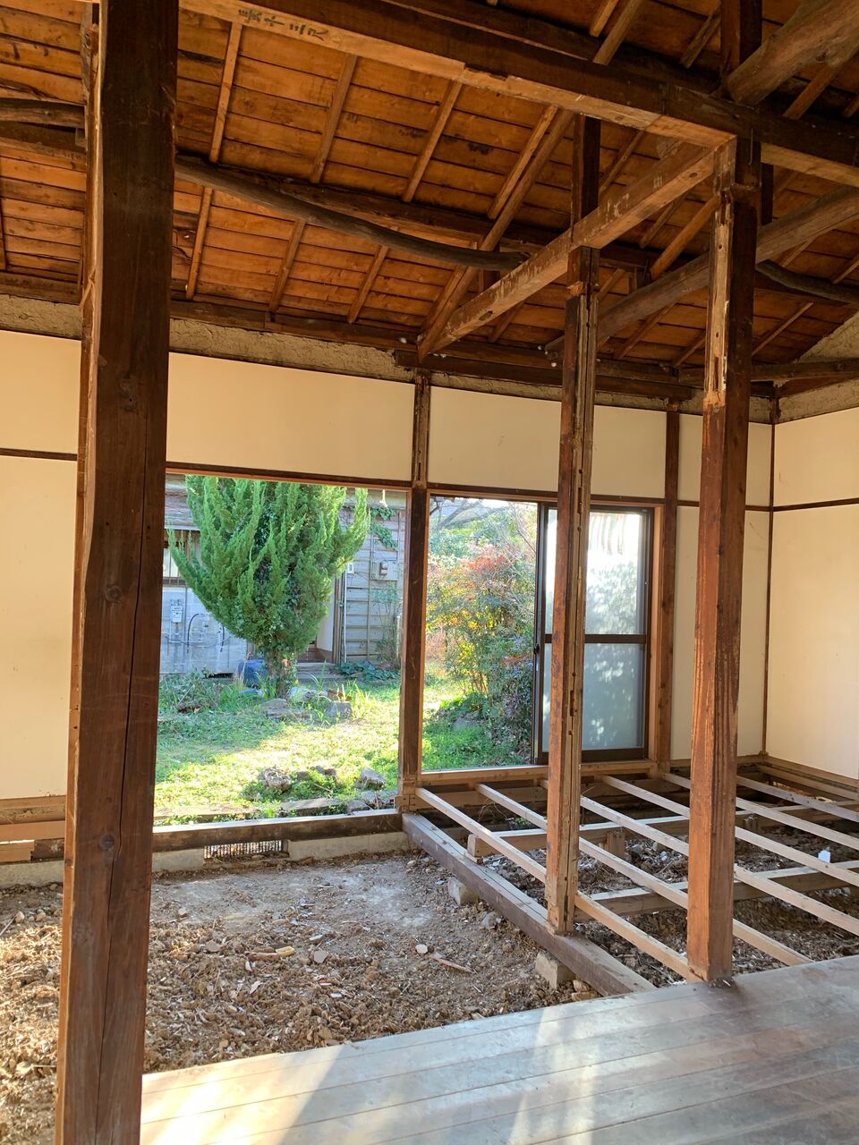 床や天井はすでに撤去されていました。間取りは基本2DK。棟と棟の間は広く庭付き。賃貸でありながらDIYによる改装も可能とか。探せばまだまだこのような廃団地などもあると思われますが、これがモデルケースとして成功すれば、各自治体の抱える似たような問題も解決出来るのではないでしょうか。