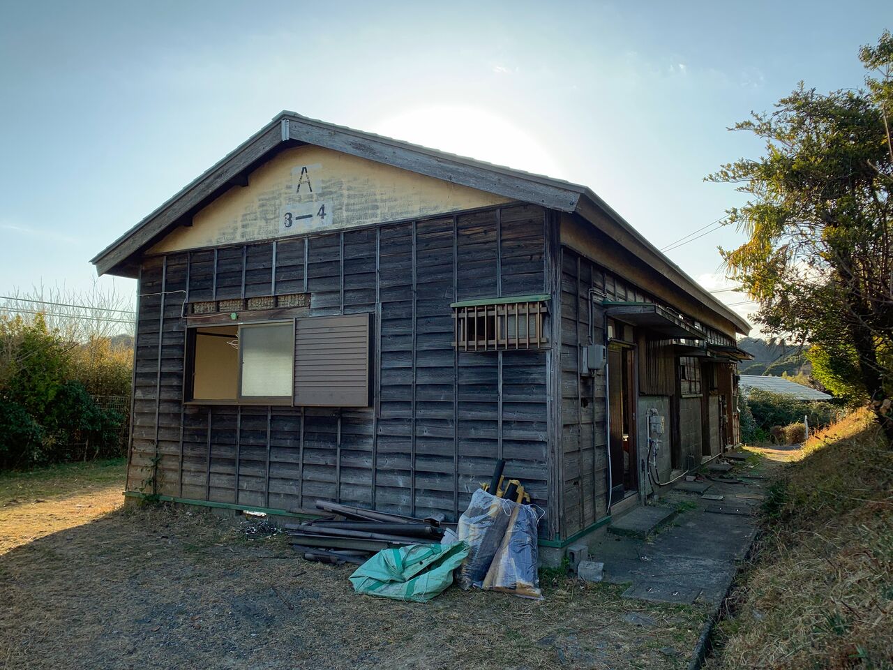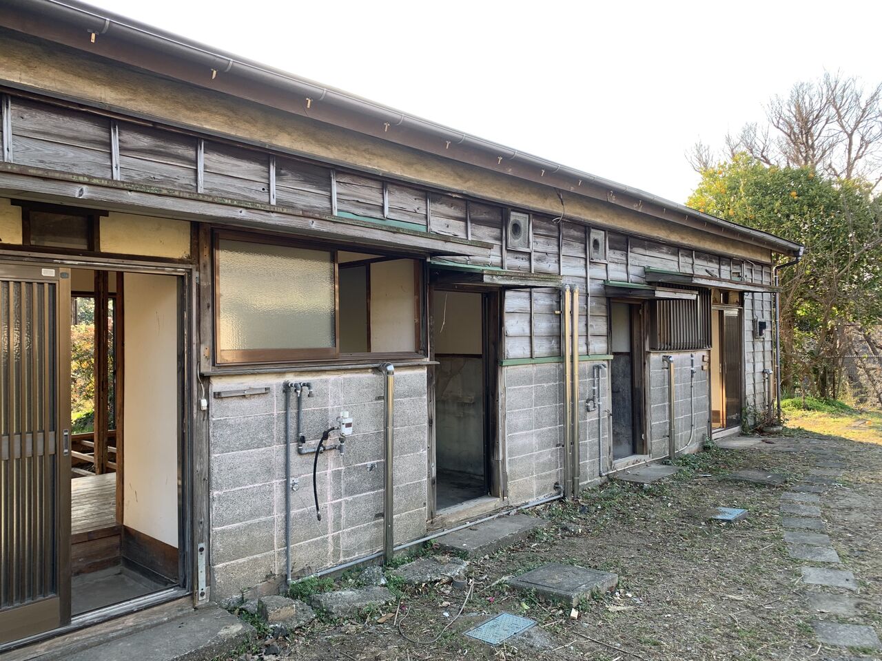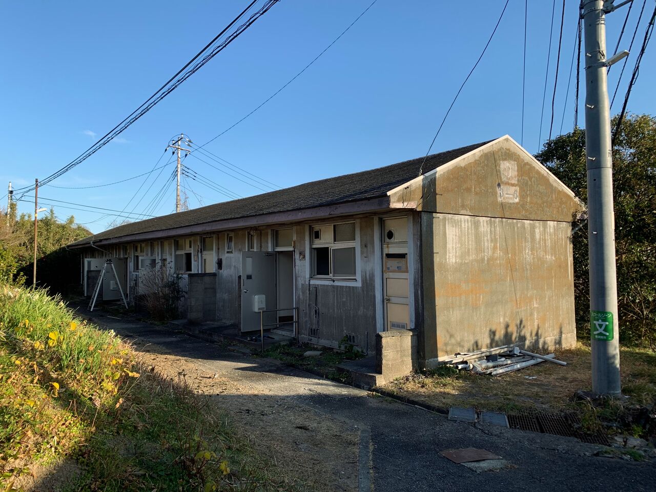 こちらはコンクリート造平屋建ての4軒長屋。この市営月見台住宅は昭和35年(1960年)に完成。2020年に廃止が決定し、2022年まで住人がおられたそうです。