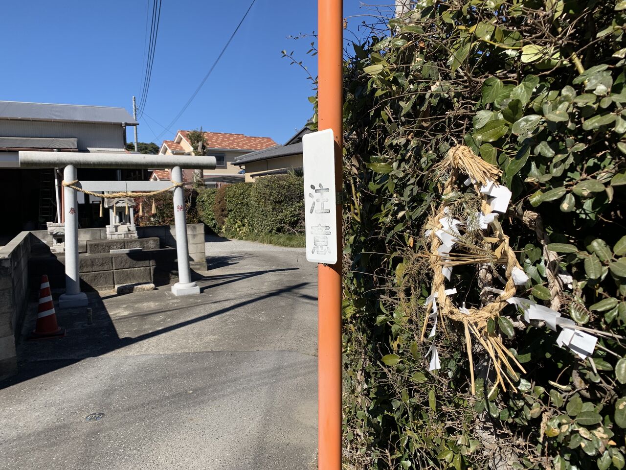 門前に縄だけが渡らされている状態。やはり時期の問題か。何しろ民間信仰になるので、いついかなる経緯で全国に広まったかなど、研究はされていますが謎な部分も多いとか。