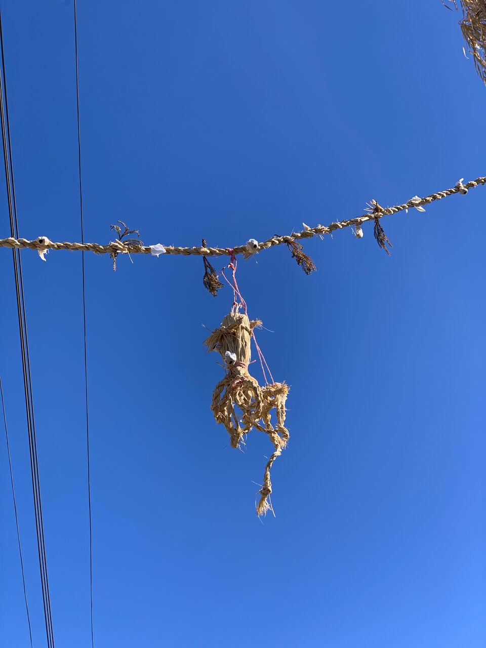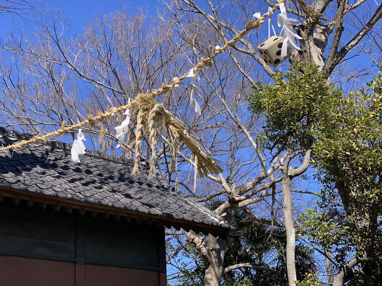 神社の注連縄にも何か吊るされています。道切りと関係があるのでしょうか。
