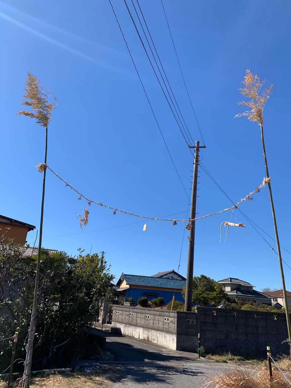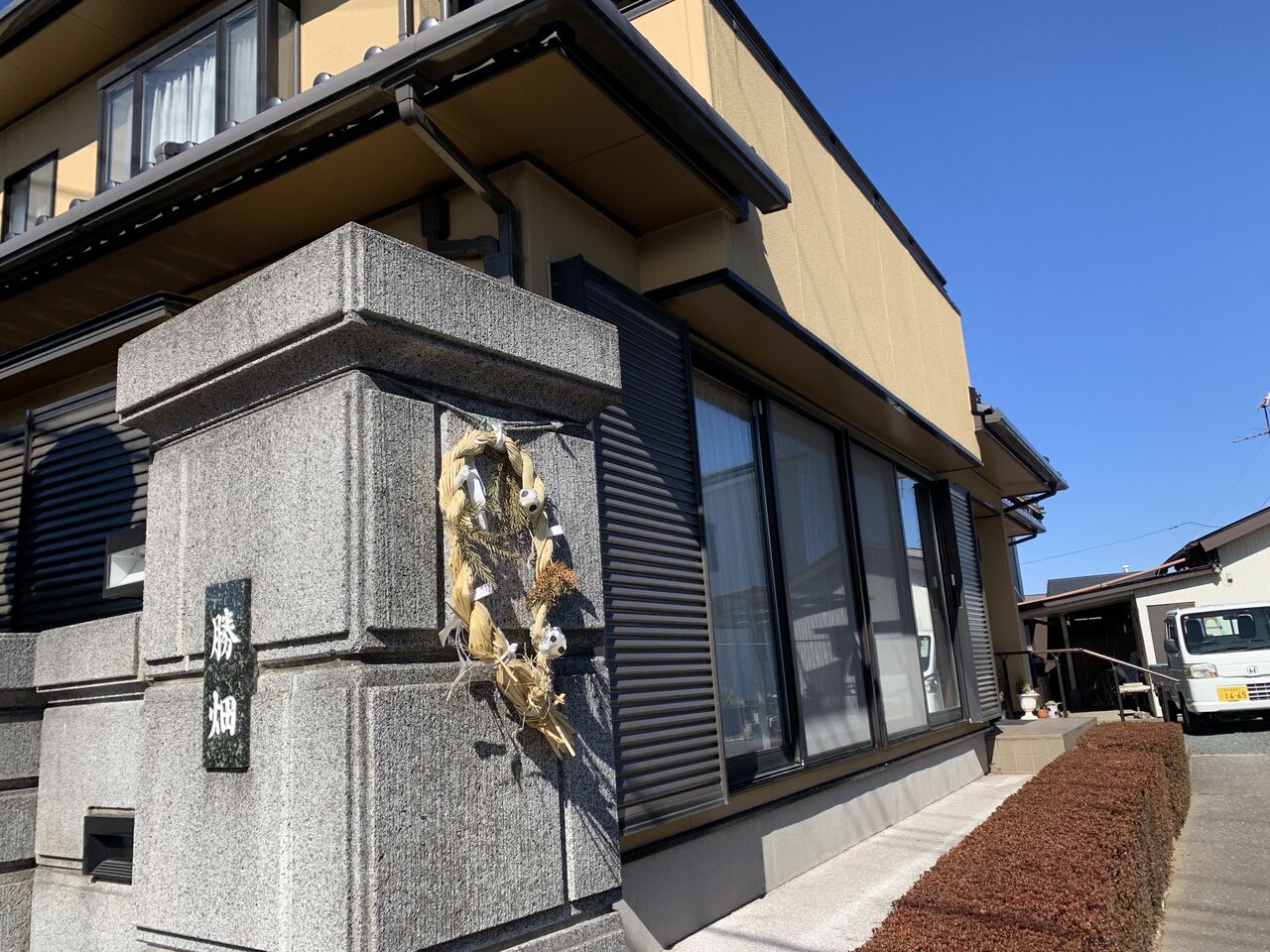 新築家屋の玄関先にも注連縄が飾られています。地域によってバラバラですが、この地区は2月の初旬に新しく張り替えられるそうです。