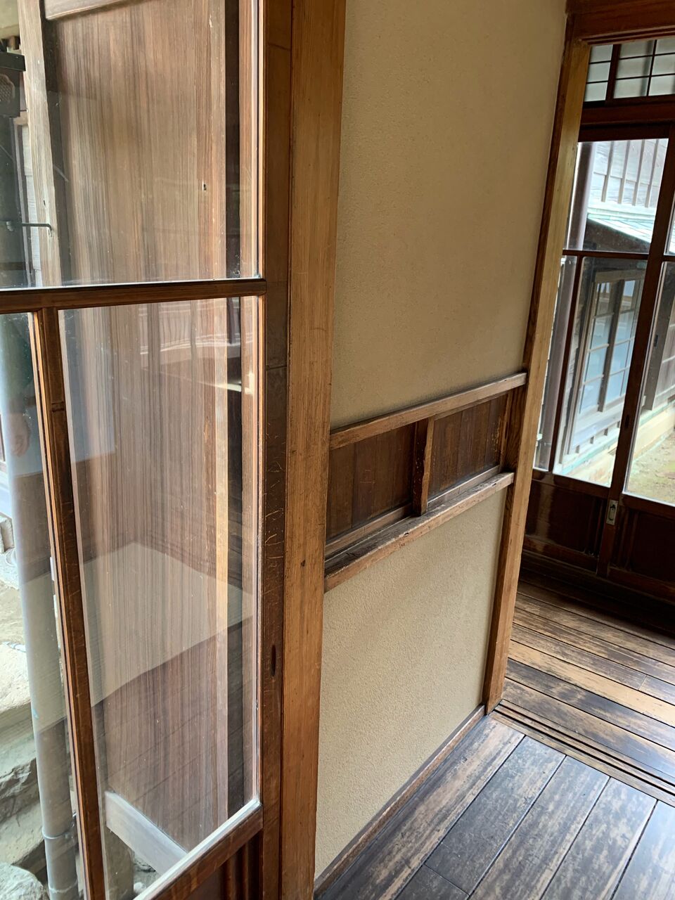貴重な大正ガラスの窓から庭園が望めます。ちなみに野田醤油の登録商標で現在の社名でもある亀甲萬は元々この茂木佐平次家の商標だったとか。