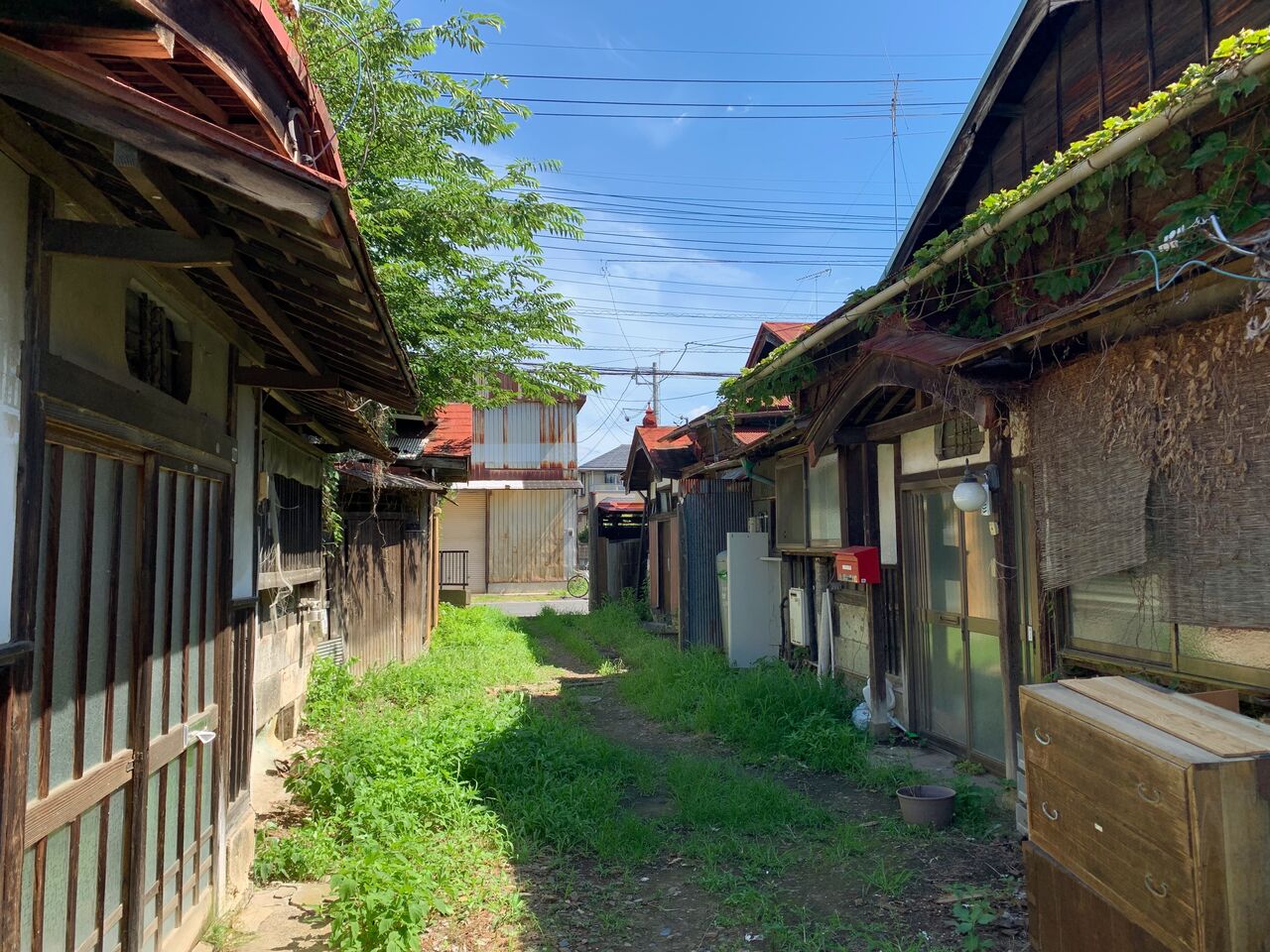 結城街道を西へ。貸家でしょうか4棟の木造平屋建て住宅が密集してました。