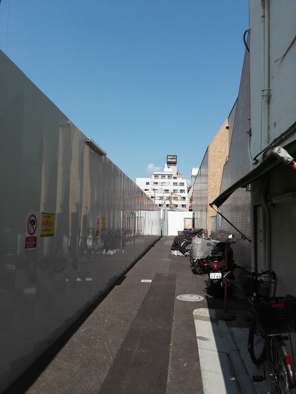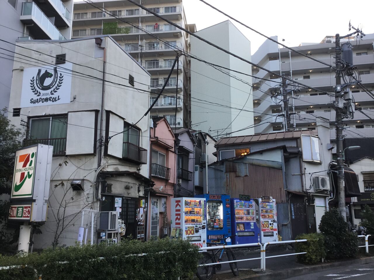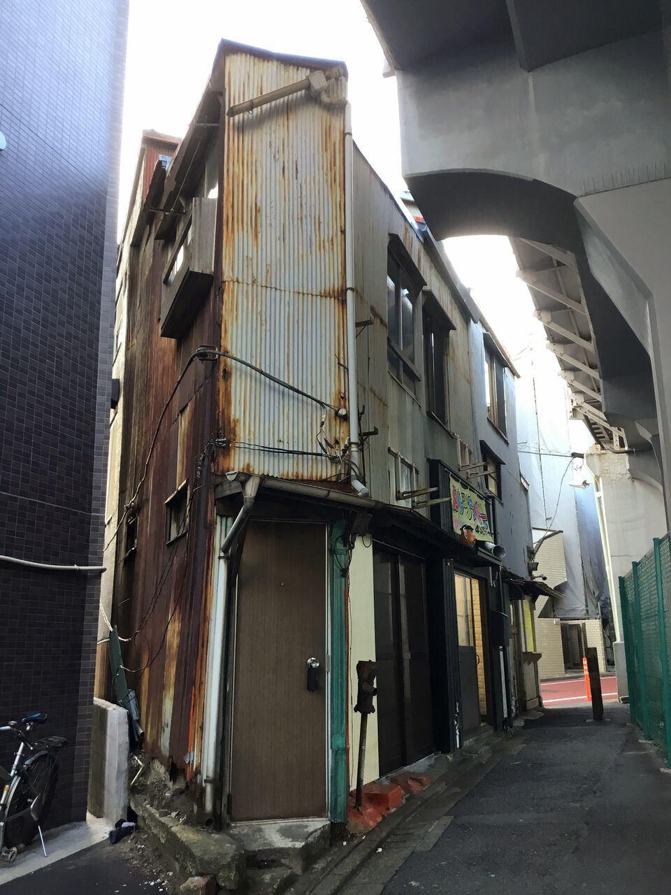 立会川の暗渠である立会道路を西に向かうと、これまた開発から取り残された路地裏飲食店街が。周囲をマンションで囲まれています。