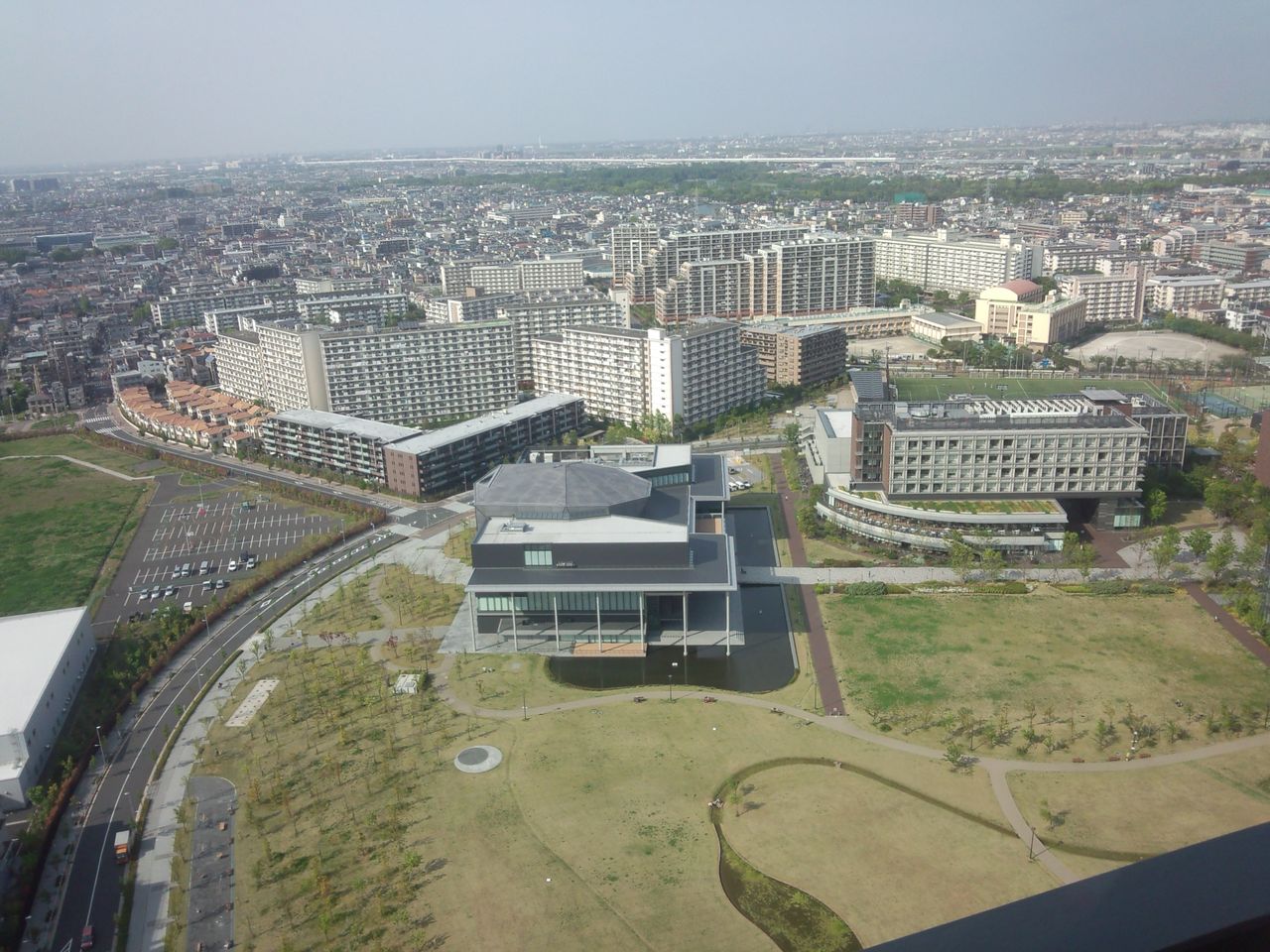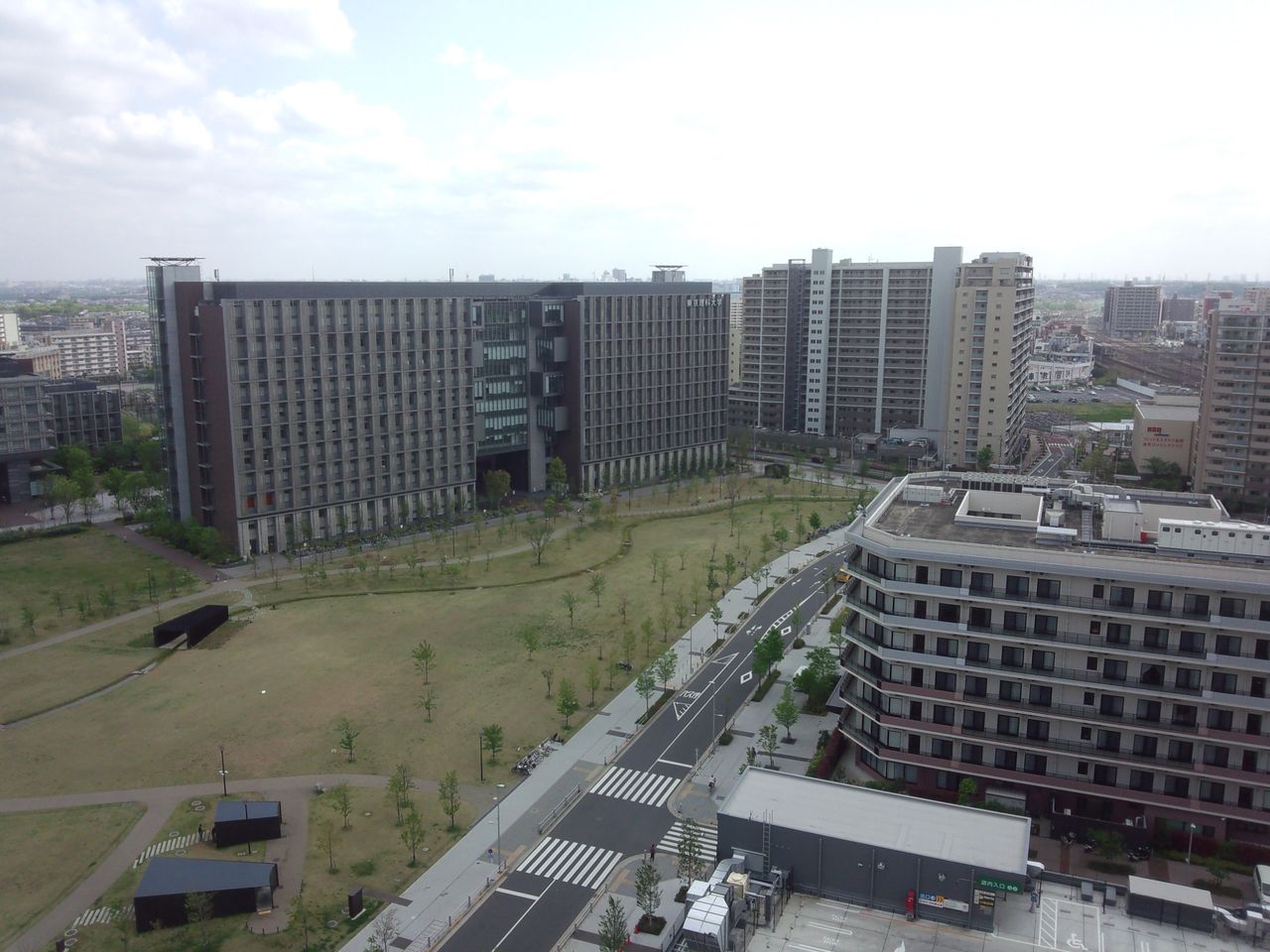 三菱製紙跡地の奥には都営新宿(にいじゅく)六丁目アパート。その向こうには水元公園、さらに奥には外環自動車道。