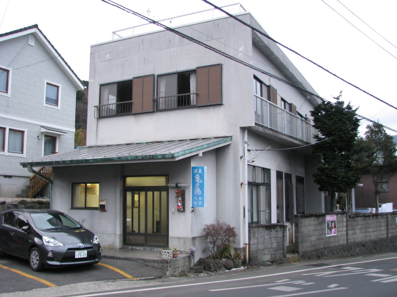 彫刻の森の近く、二の平にある温泉銭湯「亀の湯」。正月に帰省した際に訪れたのですが、寒さのせいか掛け流される源泉も熱くなく、湯船は41度とめるめ。しかしゆっくりと浸かればすっかりポカポカになりました。