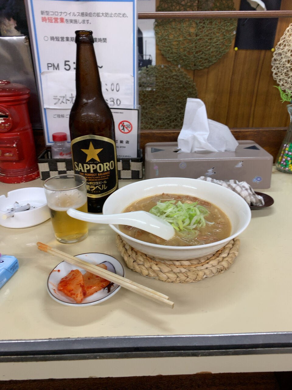 うどんセット。モツ煮を切らしてしまったそうなので代わりにアジフライ。ちょっと食い過ぎてしまった。