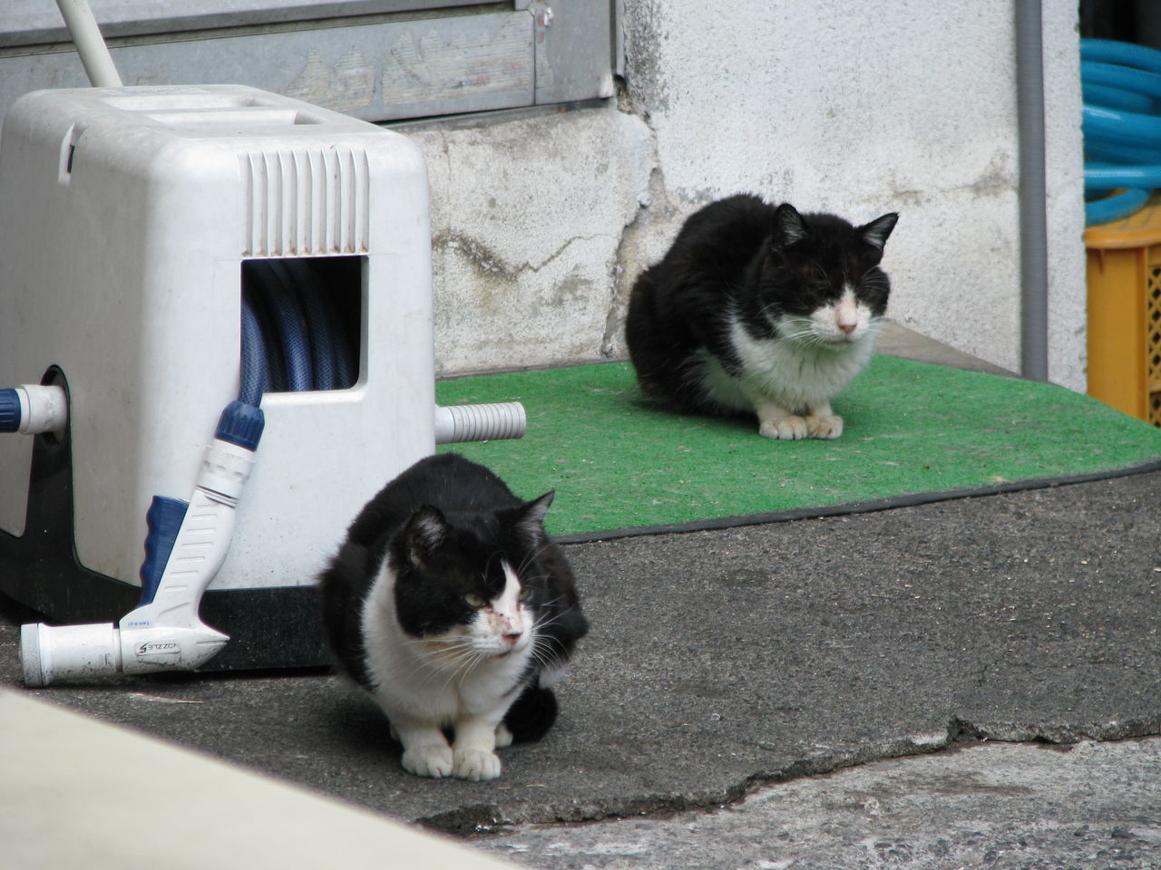 旅館『だいこく館』となりの猫溜まりはいつ訪れても猫に出会えます。最近では噂が広まったのか、外国人観光客もここの猫溜まりへ写真を撮りに来てるとか。