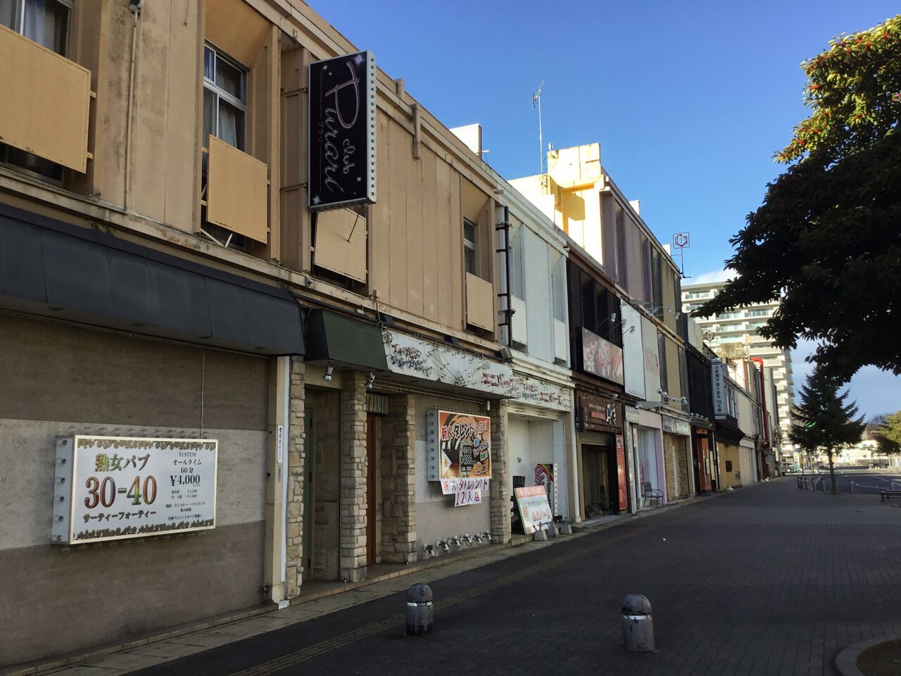 2021年12月に訪れた伊勢崎の街並みを思い出しました。あそこは駅前の商店街と歓楽街を一気に潰したものの、歓楽街は幹線道路沿いのシャッター商店街に移転することによりスムーズに行ったように見えますが、ここは……。