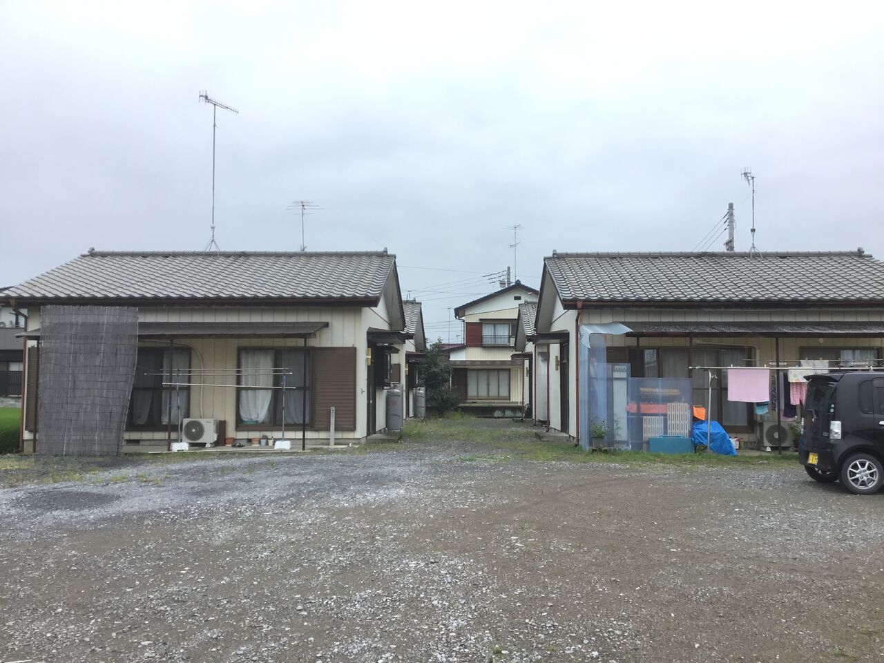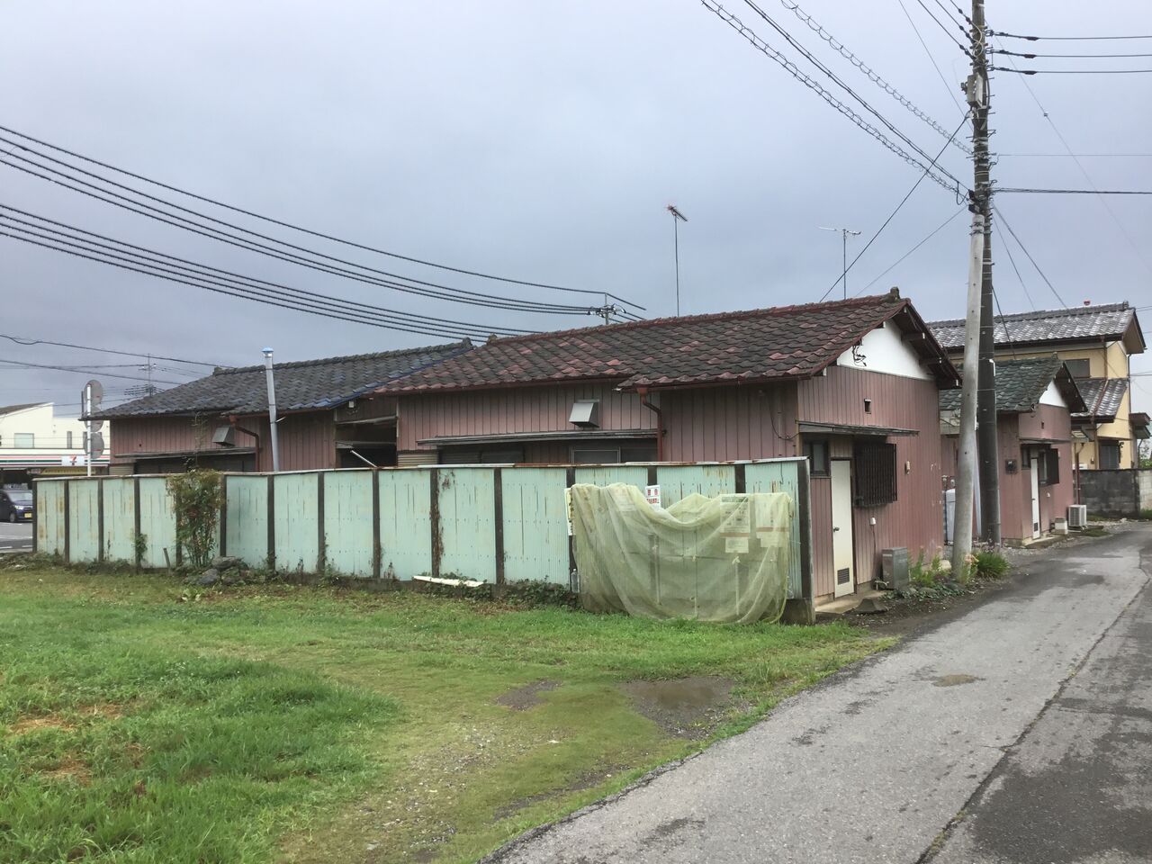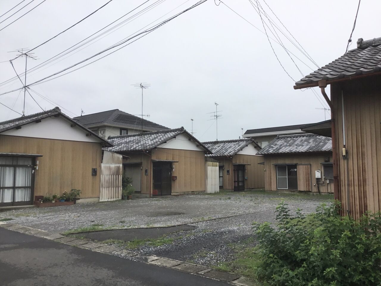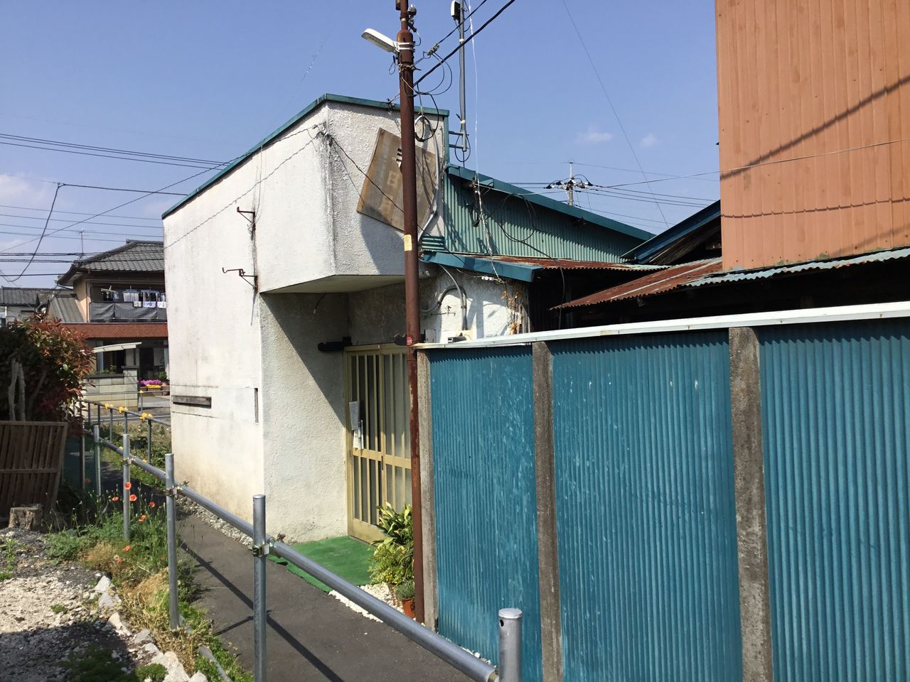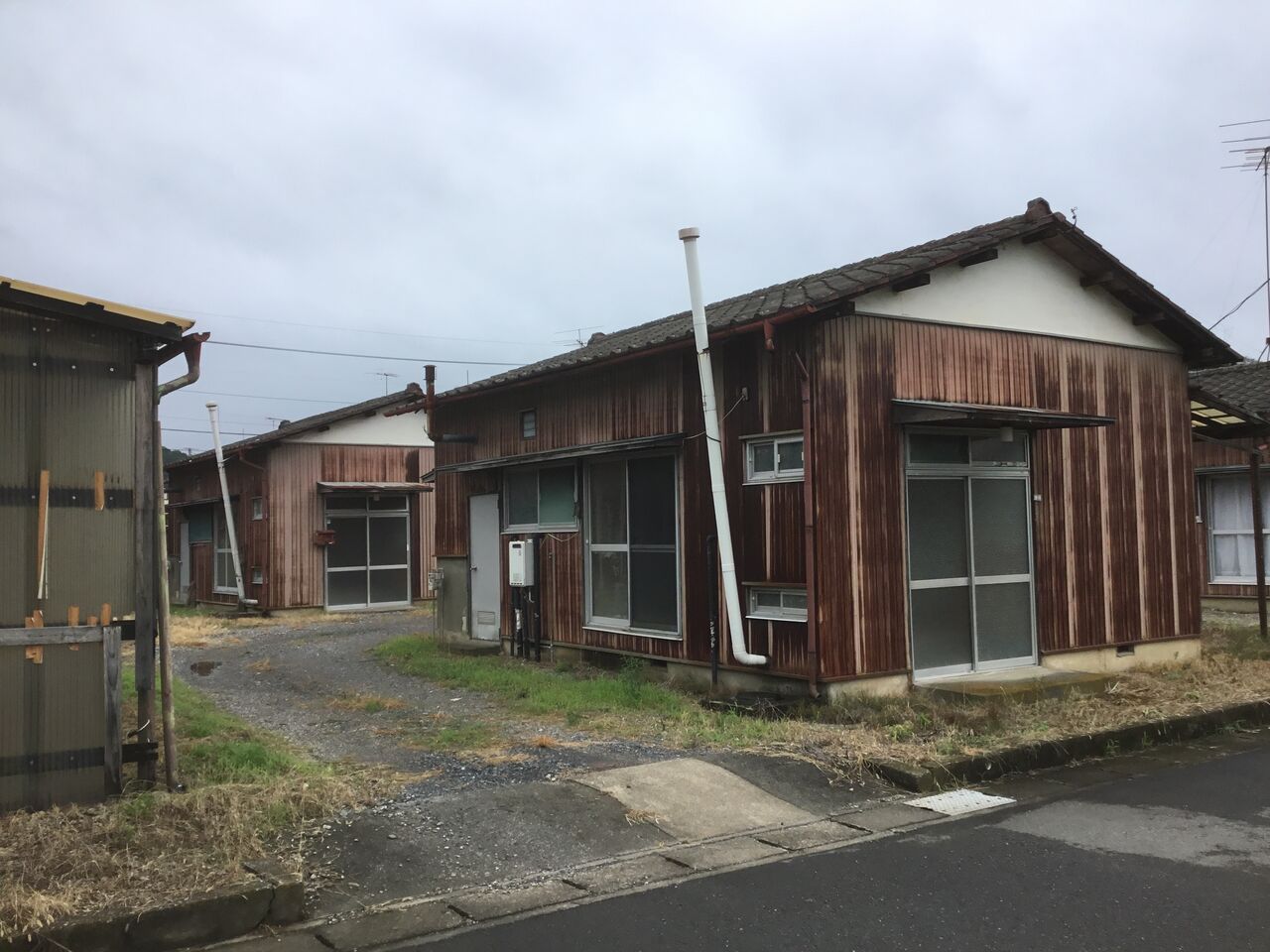 縁側どころか室内まで隣の棟の玄関から丸見えになるのは、平屋建て団地の特徴とも言えます。前々回訪れた吉水の貸家地帯も同じ時代のものと考えられる。