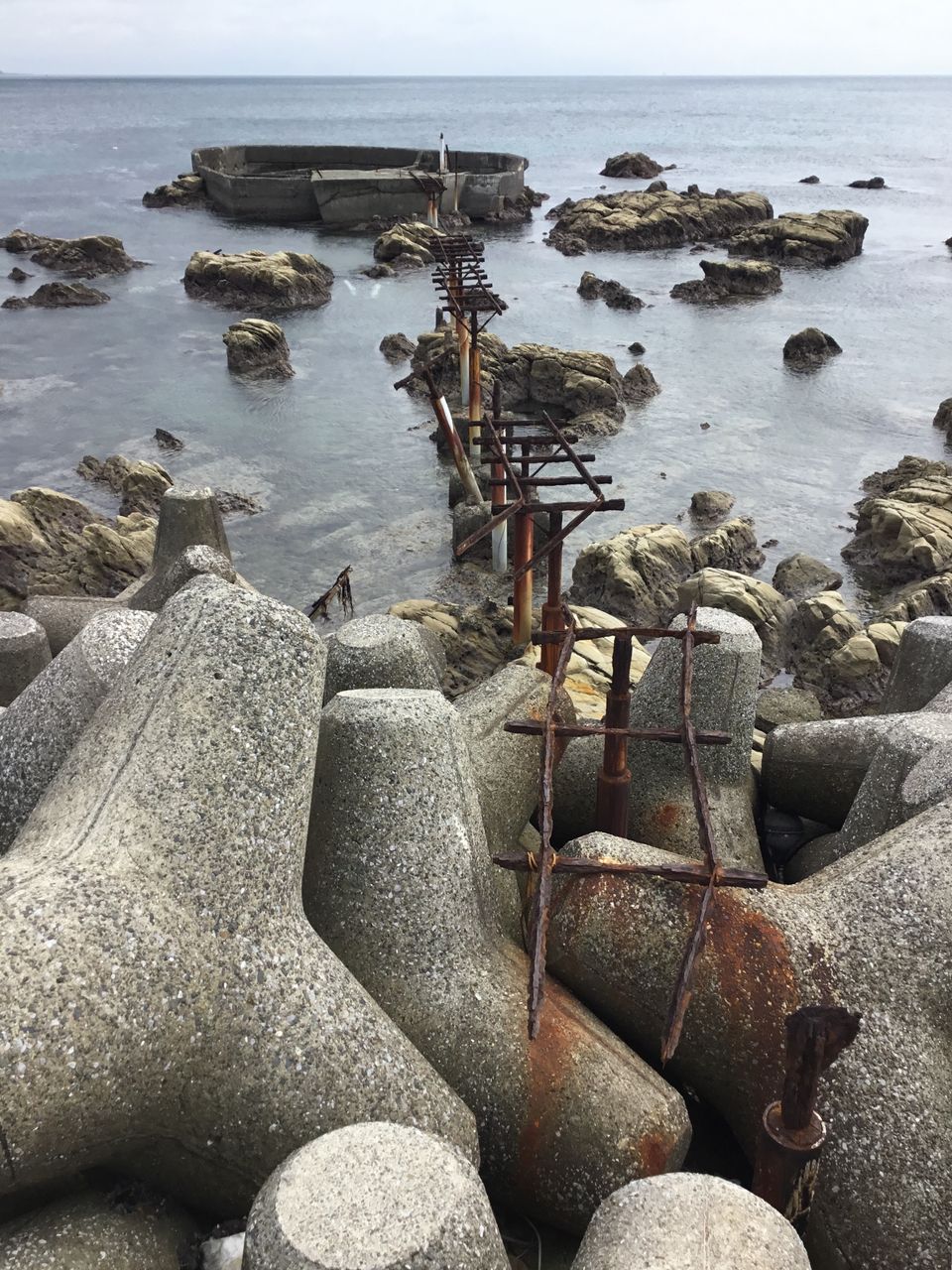 以前日記として記事を書きましたが、逗子からバスで30分ほどの久留和漁港。沖にある生簀からカゴ台車を走らせていた跡だそうです。6年前当時すでに波風の影響によりほとんど朽ち果てていましたし、果たして現在残っているのか。