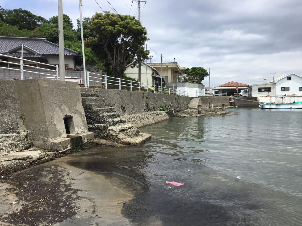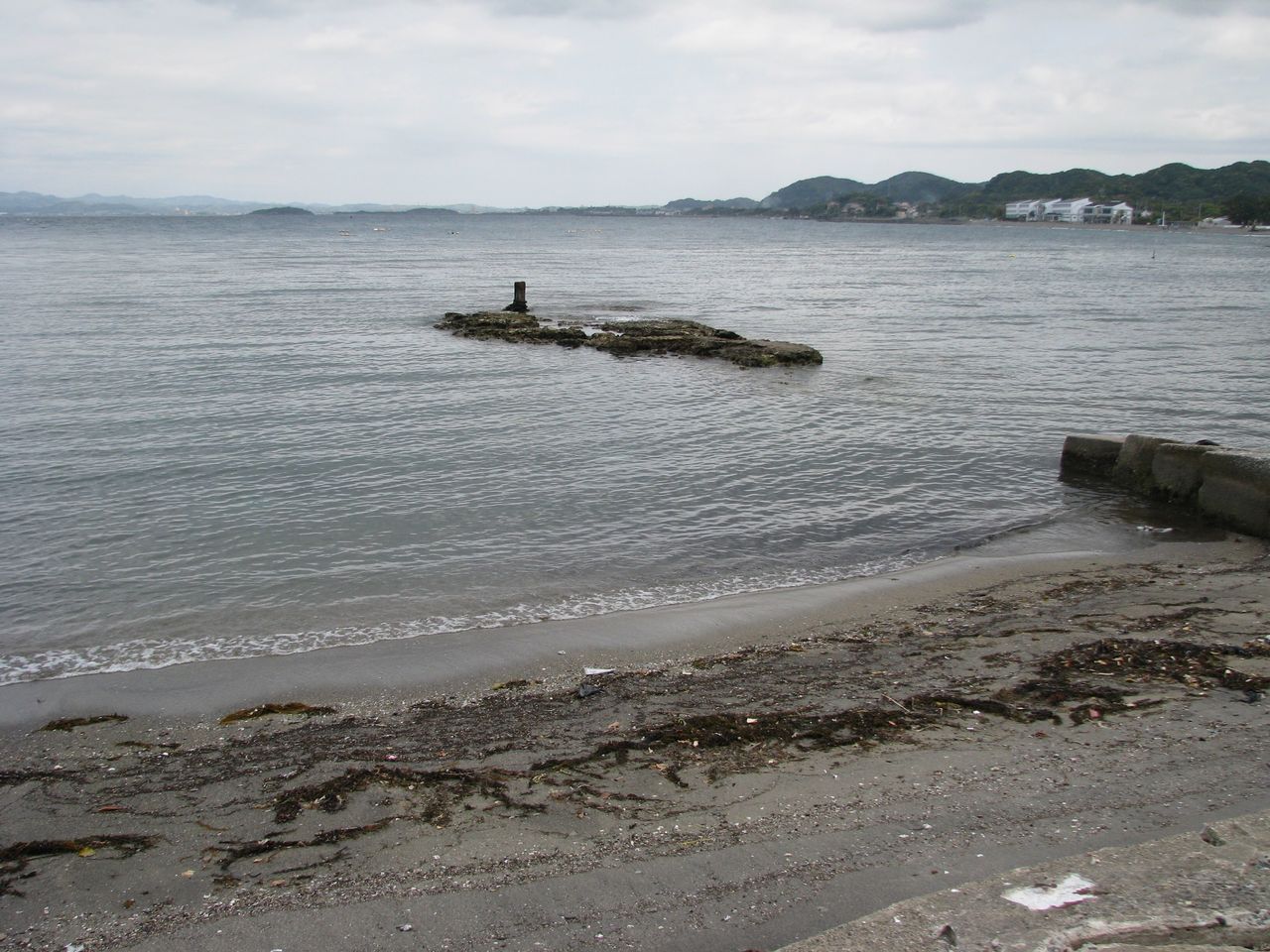 波左間の「震洋」特攻基地跡。干潮時にはもう少し遺構が顔を出すようですが、正午過ぎだったので水没していました。