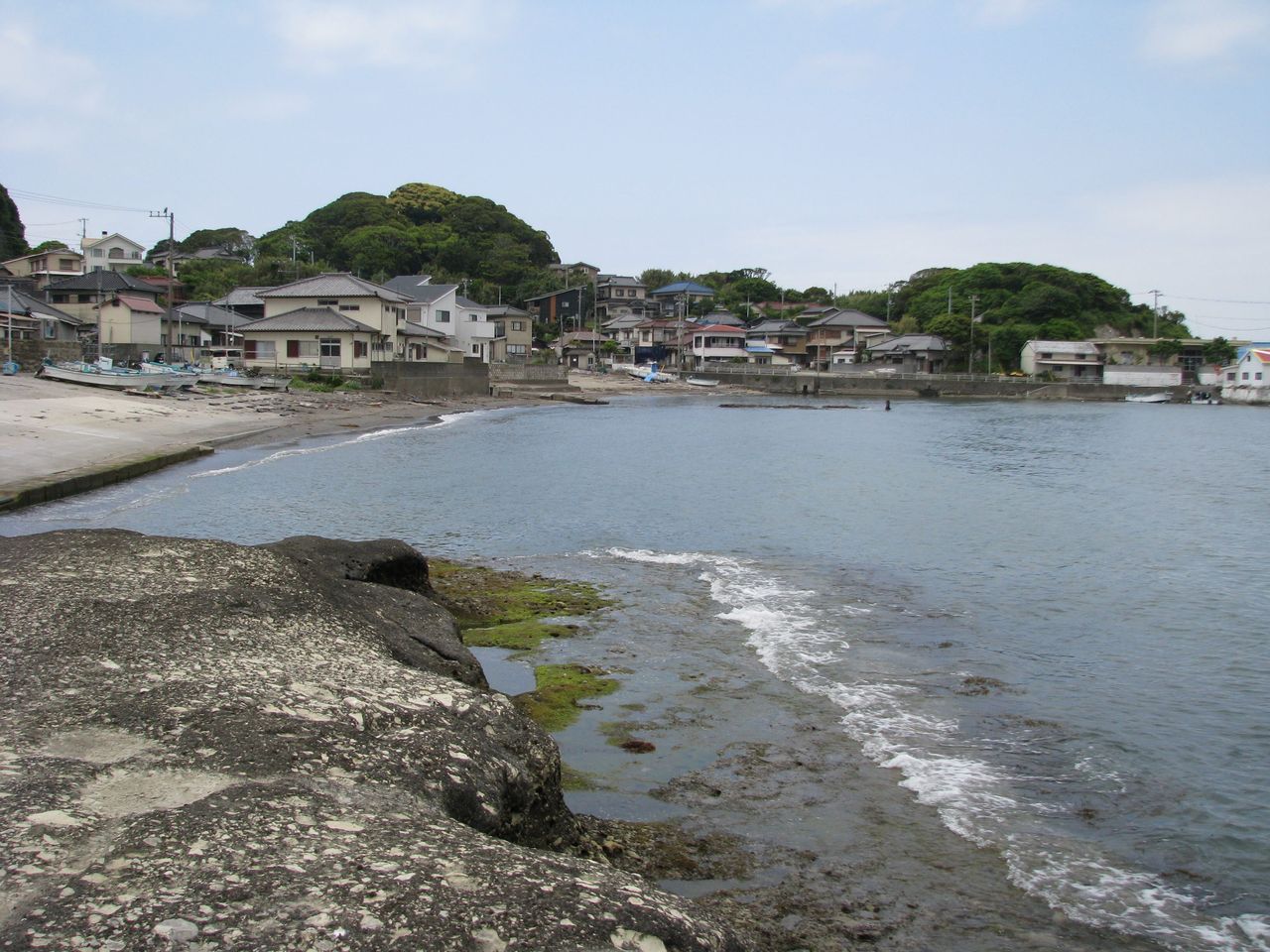 砲台のあった坂田海岸から岬一つ手前の波左間海岸。のどかな漁村って感じです。