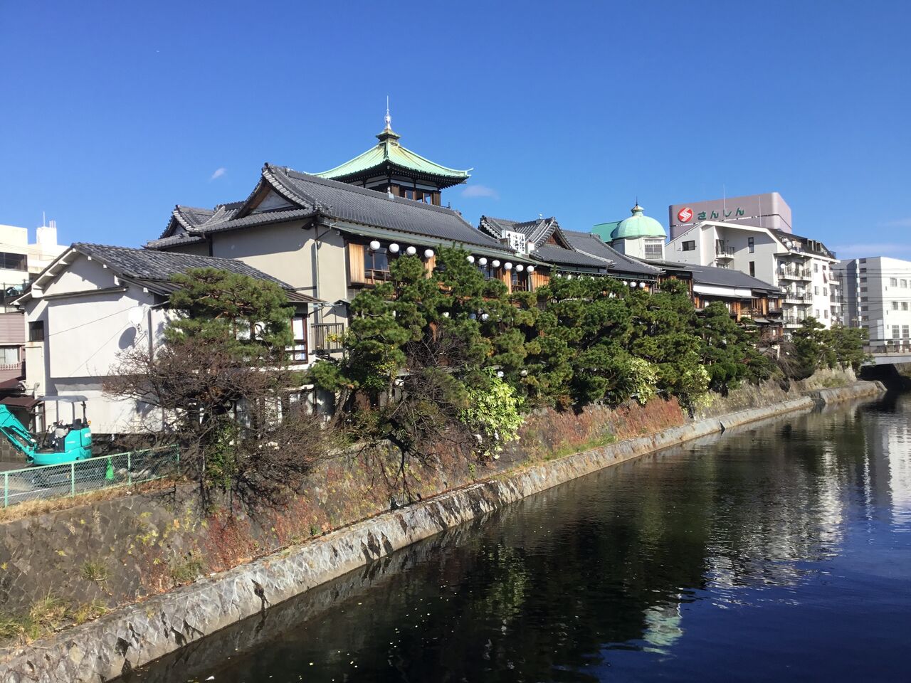 それにしても広いです。川(南)側は客室、山側は宴会場となっていますが、建物中央には吹き抜けが二ヶ所ありちょっと迷います。