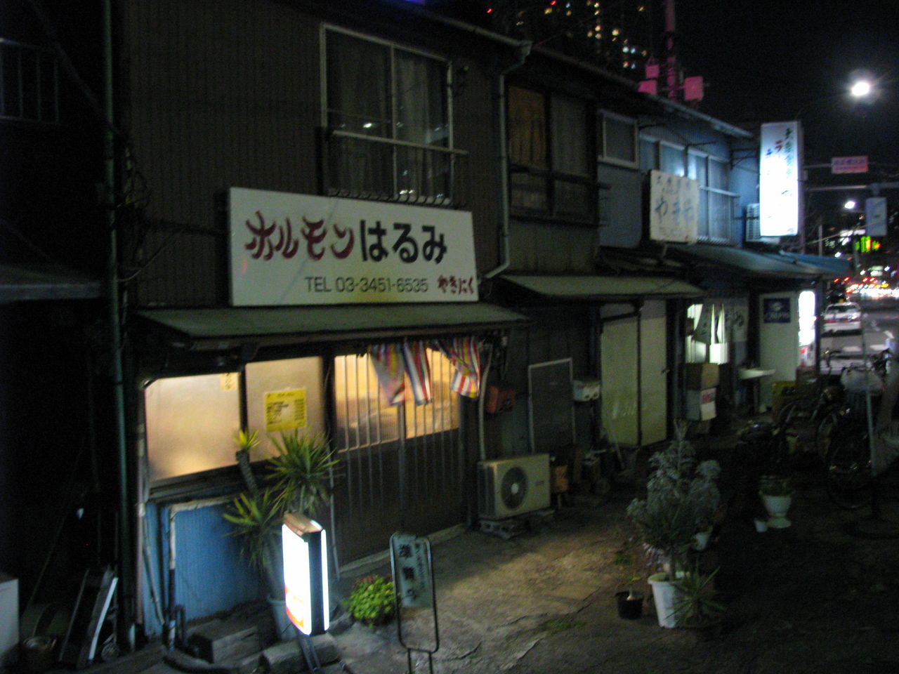 建物脇一階部分の端に、もう一軒居座っている店があります。現在はラーメン屋ですが、一年前書かれたよそのブログでは蕎麦屋になっており、四年前の時点では居酒屋だったとか。