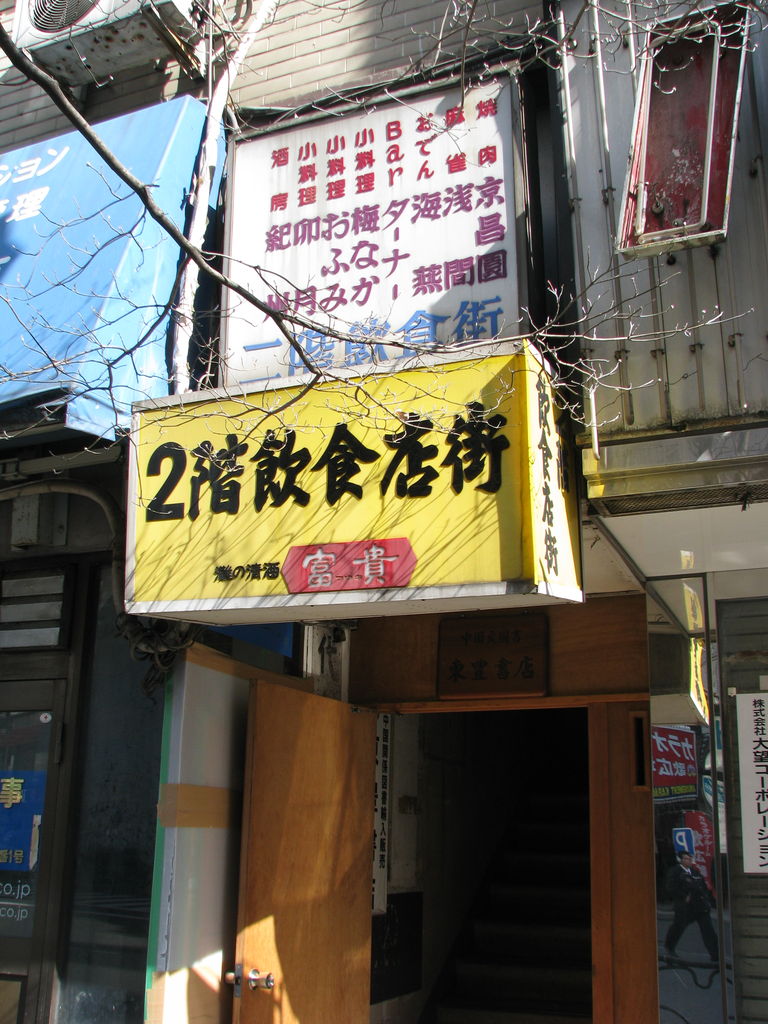 一階入り口には二階飲食店街の看板が掲げられていますが、実は二階飲食店街などとうの昔に消滅しております。ビル内へのアプローチはここだけのようなのですが、ビル三階に唯一居座っている中国書籍店の入り口のようになっています。これは恐らくですが、私のようなマニアックな人間が頻繁に入って来るものだから、本屋に用のない者入るべからずとアピールしているのではないでしょうか。