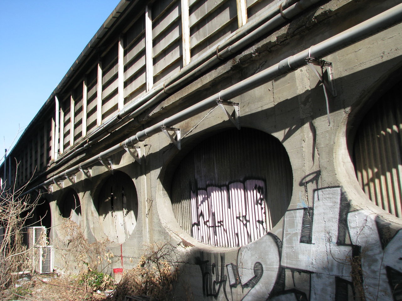 ただ私は、建物脇を入った所の楕円形の穴にも興味が湧き、近づいてみました。するとそこは、丁度代々木駅一番線ホームの真下にあたる部分でした。今ではビルの裏側になりますが、かつてはこの穴を眺める路地があったのかも知れません。