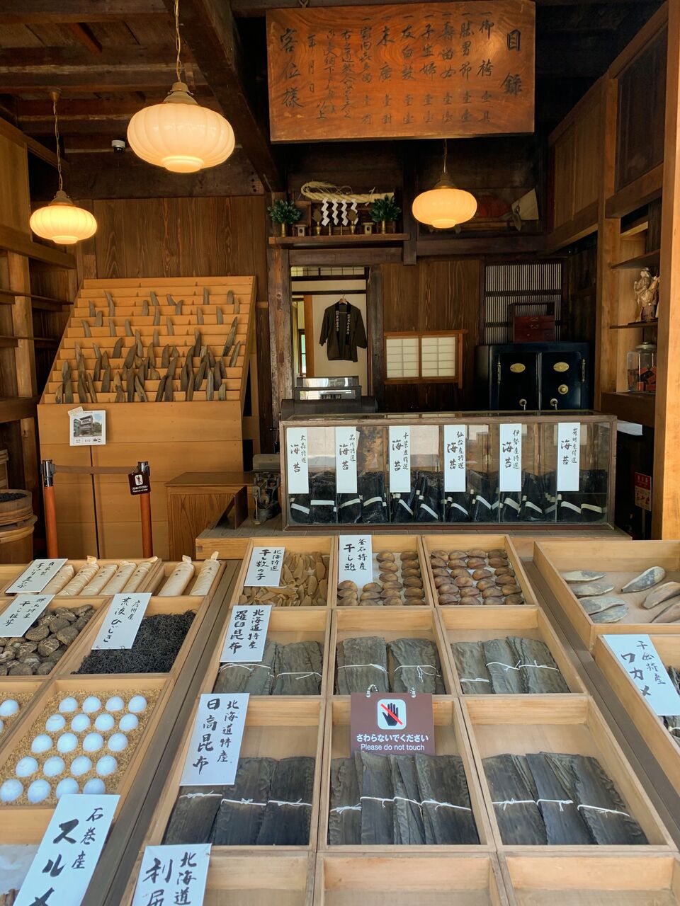 店内は建設当初の乾物屋の様子を再現しており、干し鮑や昆布などが陳列されています。白金台4丁目と言えば東大医学部研究所附属病院とかありますね。白金台駅の辺りでドン・キホーテの向かい側。今ではオシャレな高級店が建ち並んでいます。