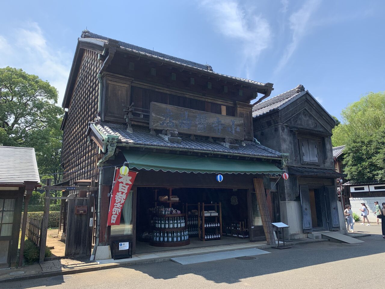 昭和8年(1933年)建築。味噌や醤油、酒類を販売していたそうです。ちゃんと当時のラベルが貼られた瓶などがディスプレイされています。