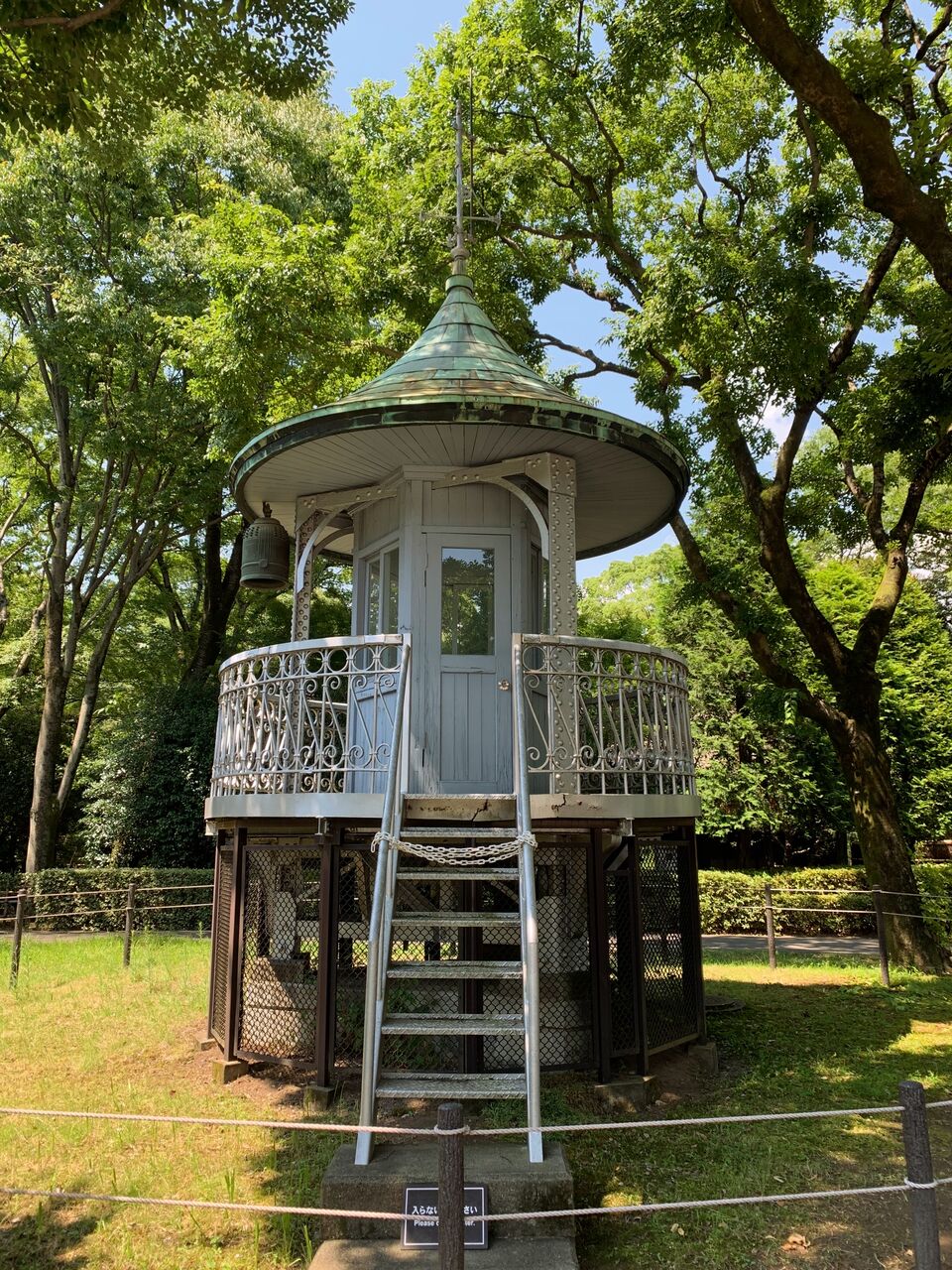 上野消防署(旧下谷消防署)望楼上部。いわゆる火の見櫓の上の部分ですが、当時の高さは約23.6m。都心の望楼は建造物の高層化や電話の普及とともに次第に役目を終えていったそうですが、この望楼は大正14年(1925年)に造られて昭和45年(1970年)まで使用され、昭和52に解体されたとか。