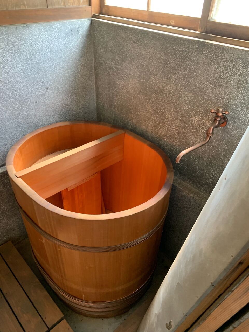 お風呂はこんな感じ。壁面から蛇口が出ています。