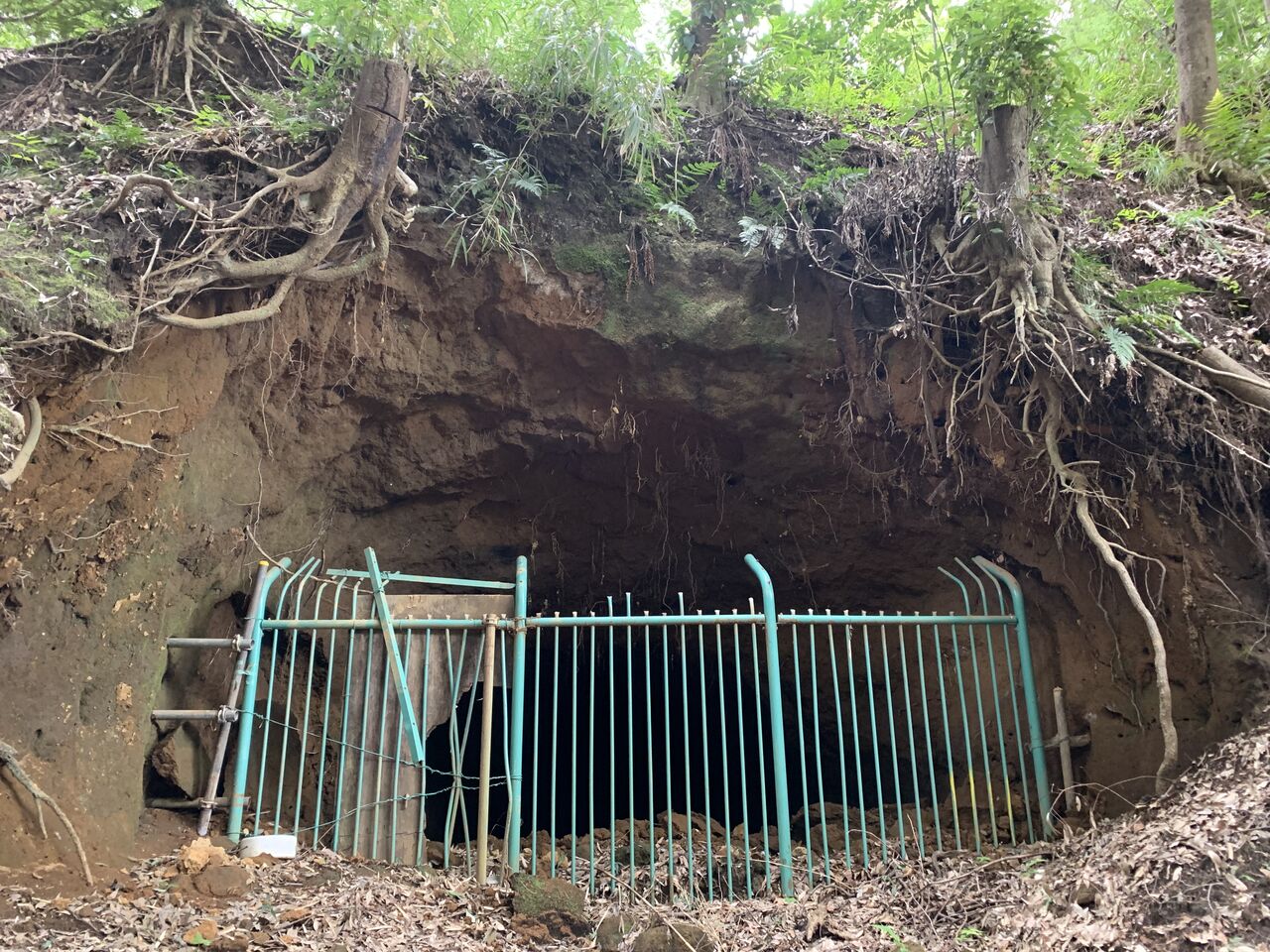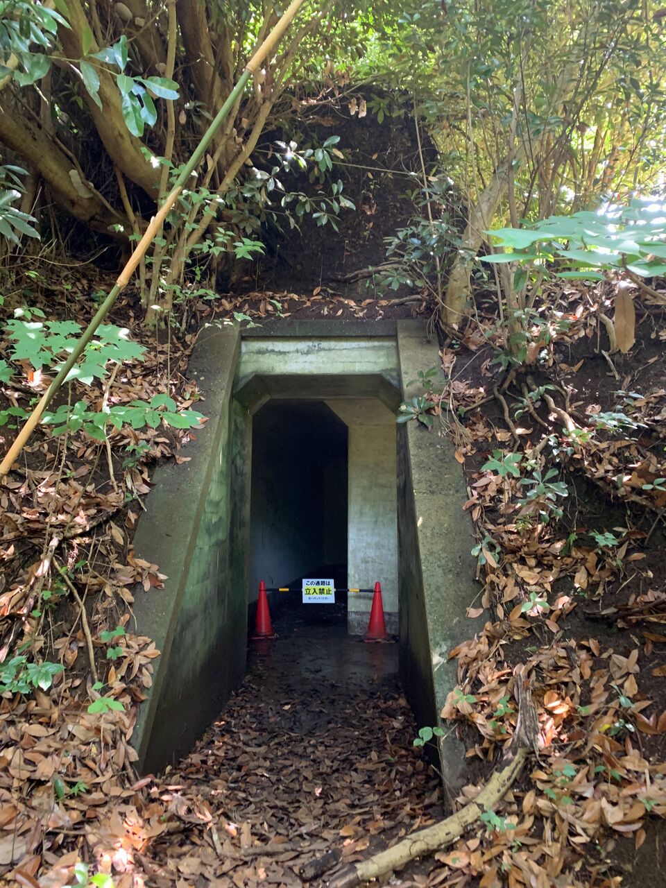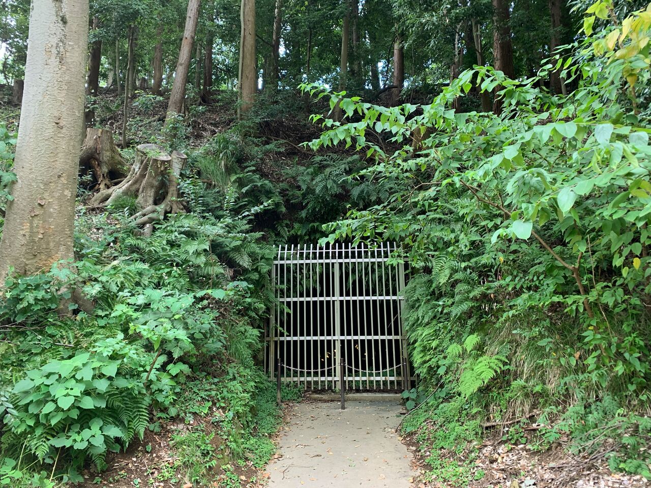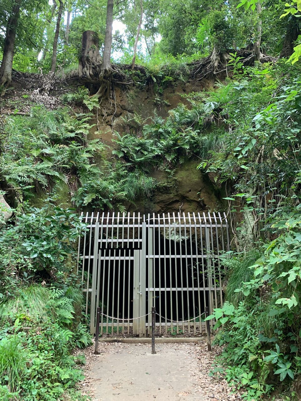 地下壕内部はライトアップされているものの柵で閉鎖され内部は非公開。とは言え関東ローム層ならではの赤土土壌ほ斜面を歩いていても非常に柔らかく、これでは崩落の危険性もあると思わざるを得ません。