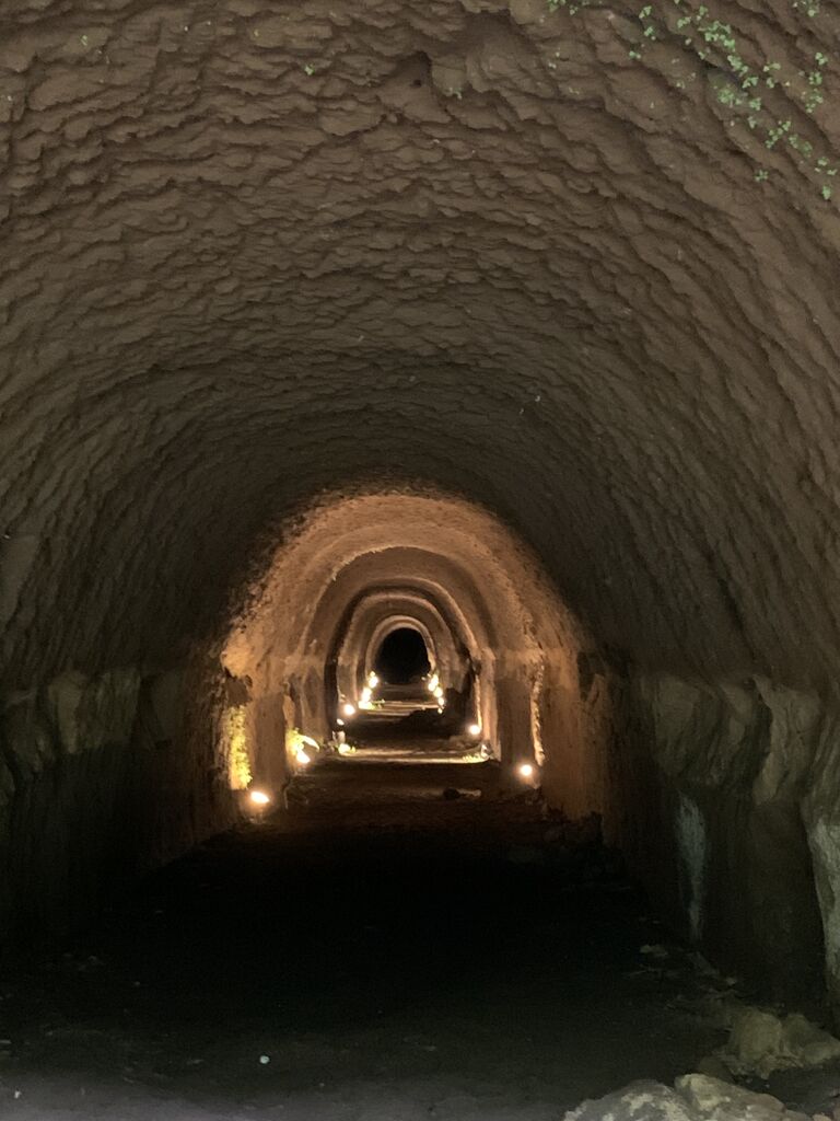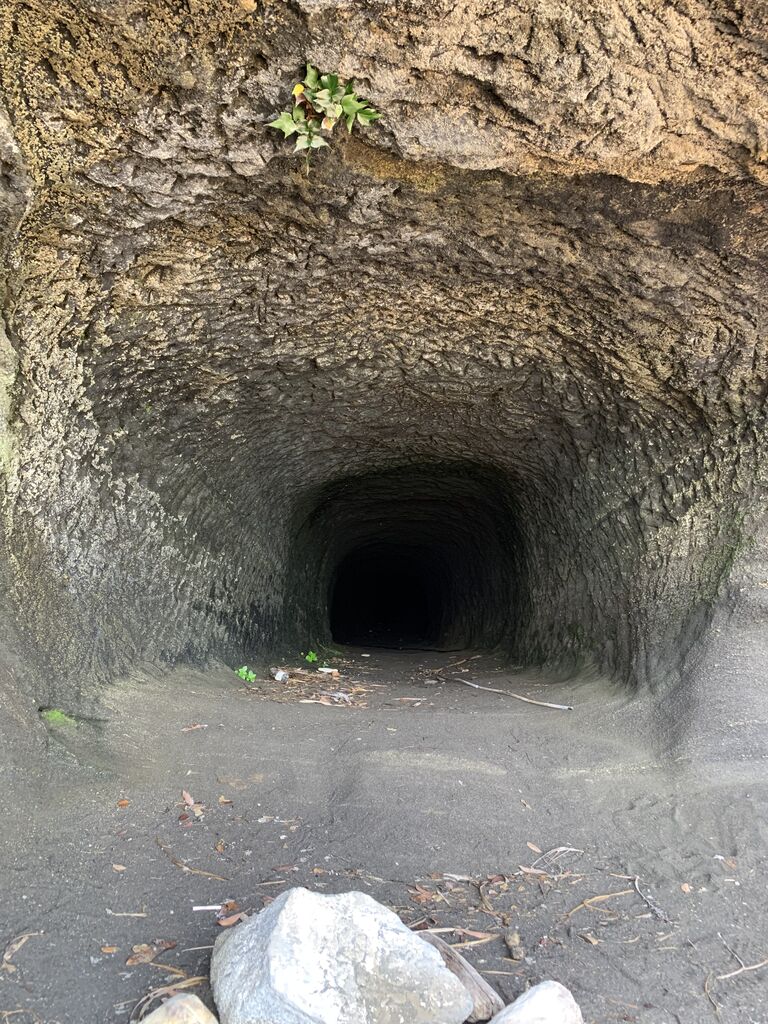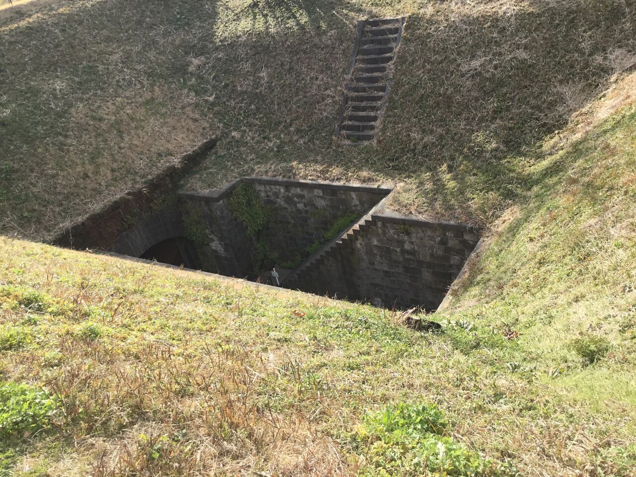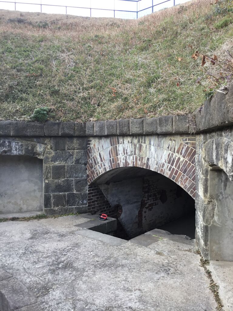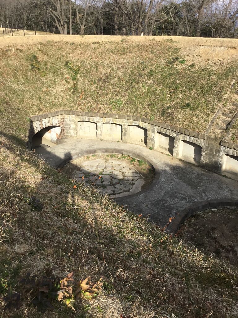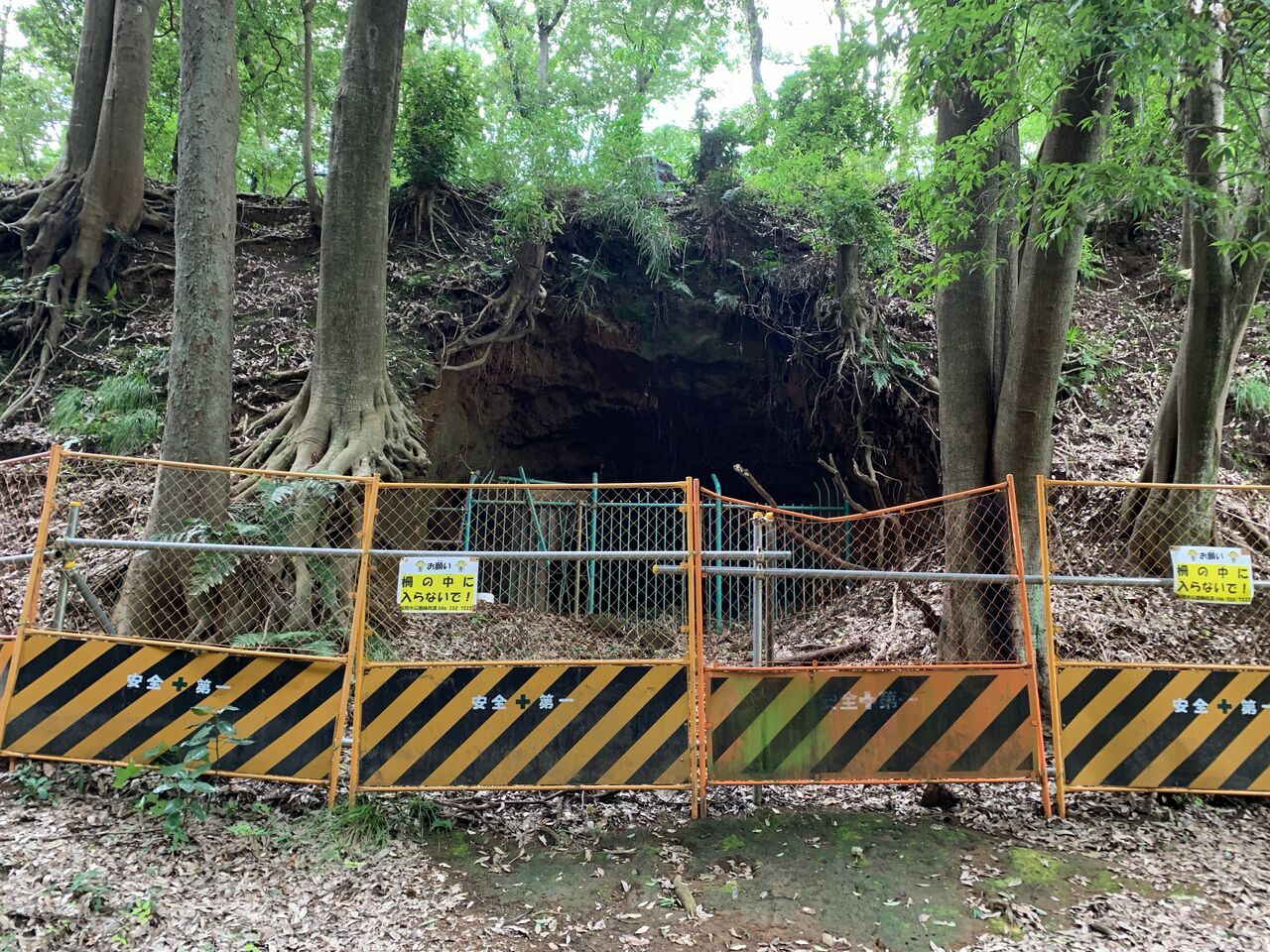 地下壕内部はライトアップされているものの柵で閉鎖され内部は非公開。とは言え関東ローム層ならではの赤土土壌ほ斜面を歩いていても非常に柔らかく、これでは崩落の危険性もあると思わざるを得ません。