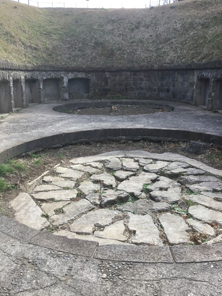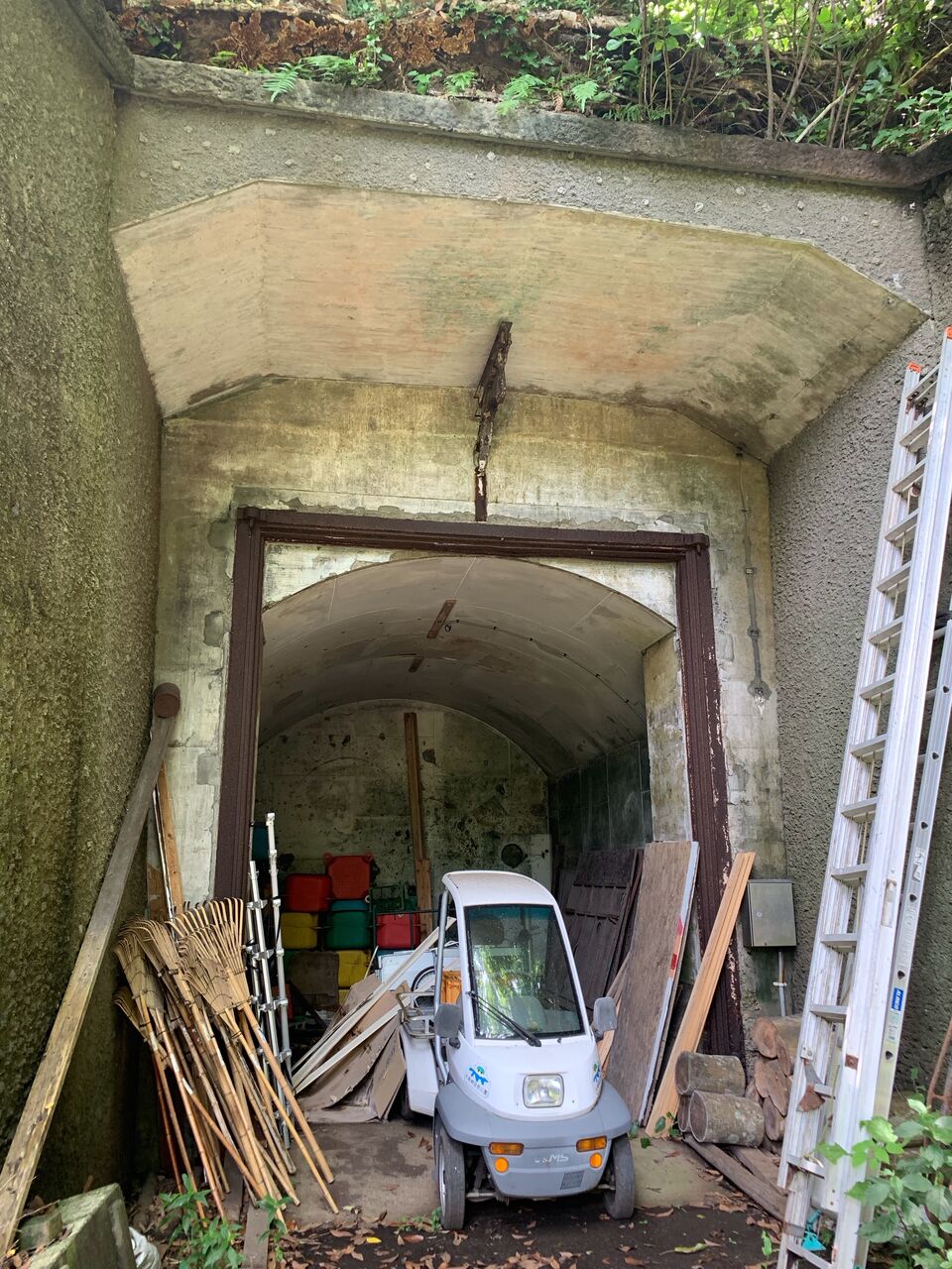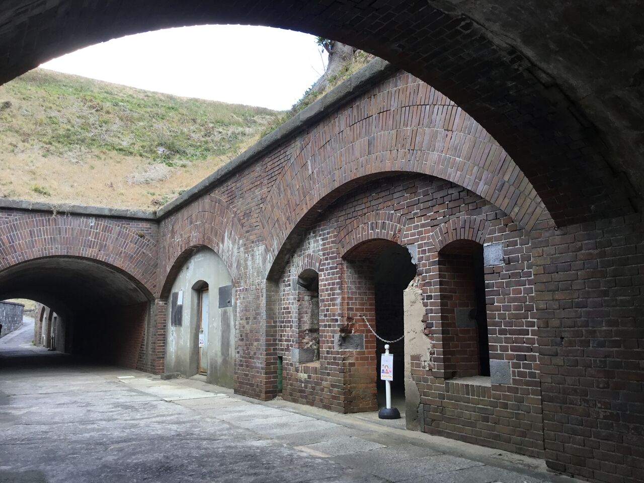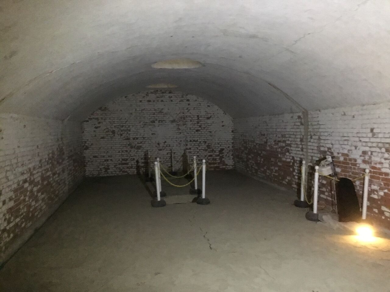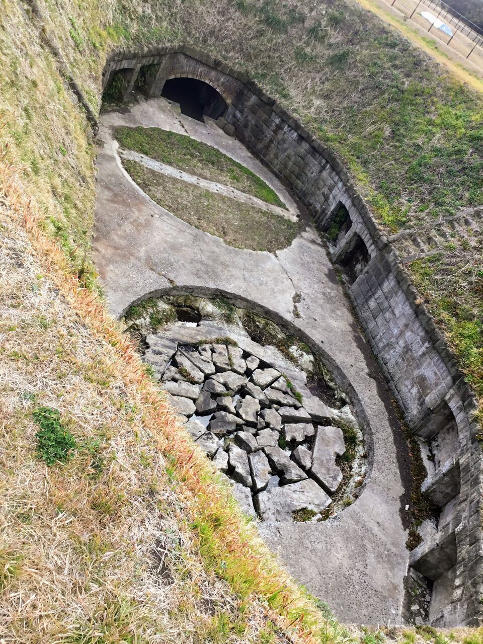 地下壕内部はライトアップされているものの柵で閉鎖され内部は非公開。とは言え関東ローム層ならではの赤土土壌ほ斜面を歩いていても非常に柔らかく、これでは崩落の危険性もあると思わざるを得ません。
