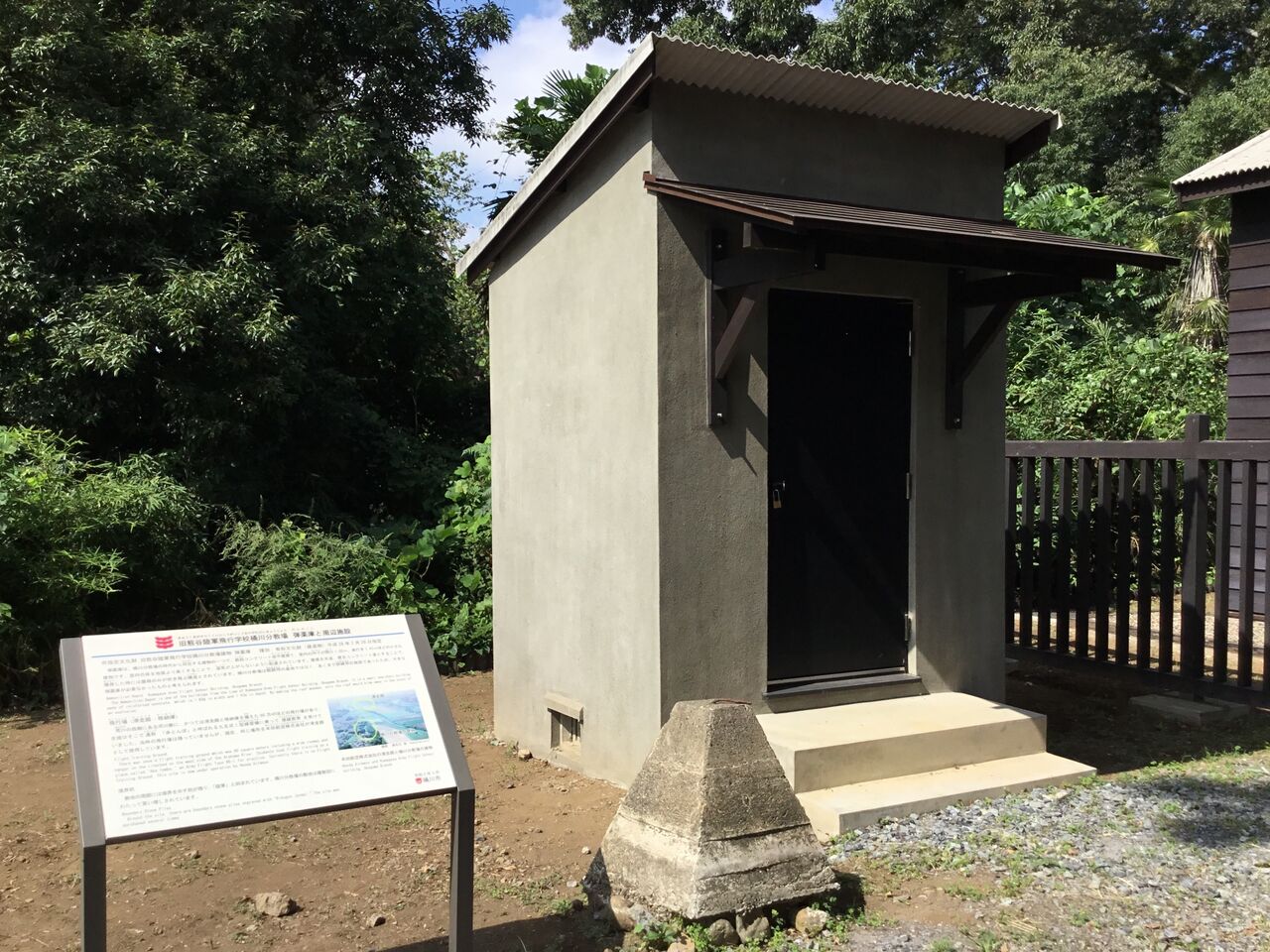 内部には1/4スケールぐらいでしょうか、縮小版の雷電のレプリカが置かれています。ここより南にはかつて、昭和17年に完成し第三〇二航空隊が置かれた海軍厚木航空基地、現在の厚木米軍基地があり、北には昭和12年に東京から移転して来た陸軍士官学校、現在の米軍キャンプ座間などがあります。