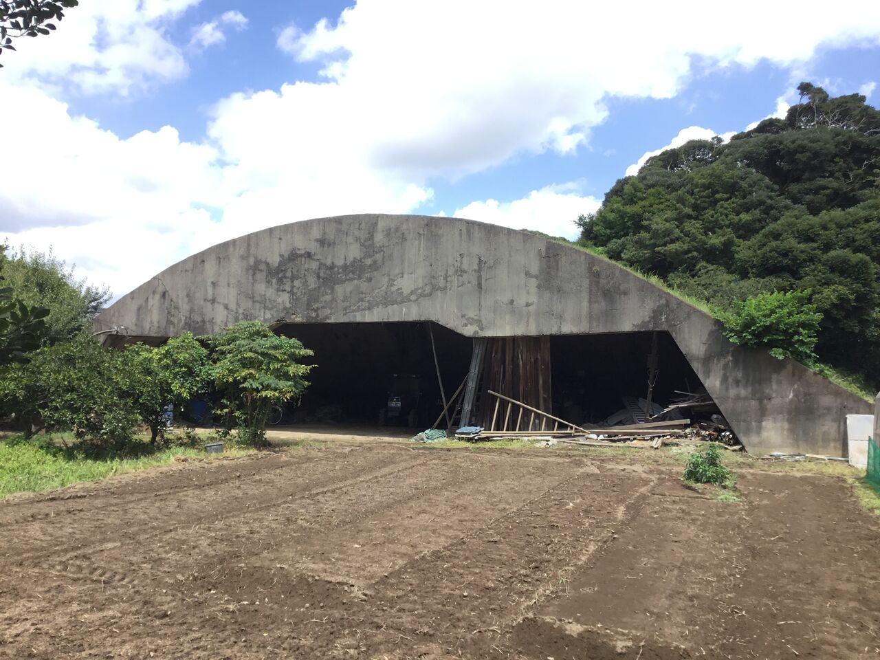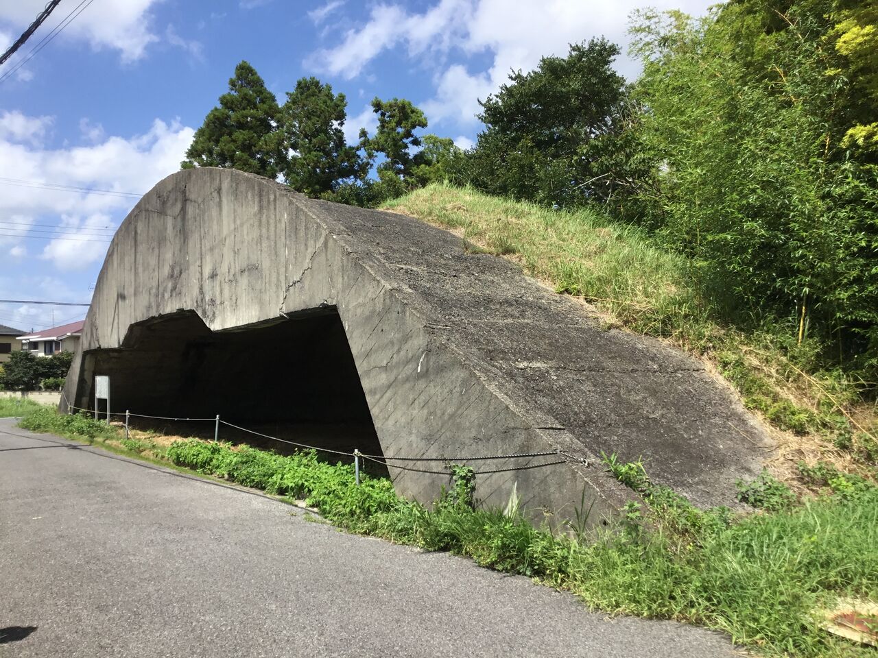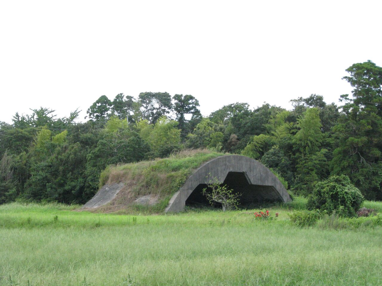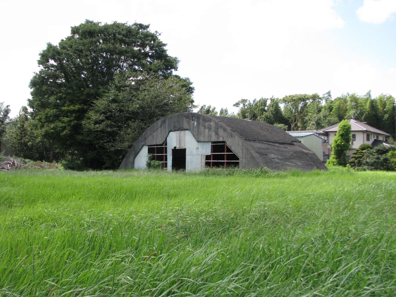 前面は使われなくなった水田で背後は森と民家。近づけませんでしたが、農機具などの倉庫として使われているようです。以上9ヶ所が現存していますが、これだけ多くの掩体壕が残っているのは全国でもここだけです。観光資源としての可能性を秘めながらも、なにぶんほとんどが私有地であるため難しいです。また基地としても短命で歴史的見地からも文化財指定は難しいでしょう。