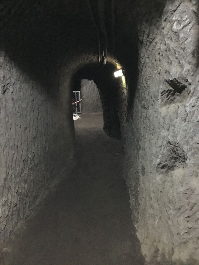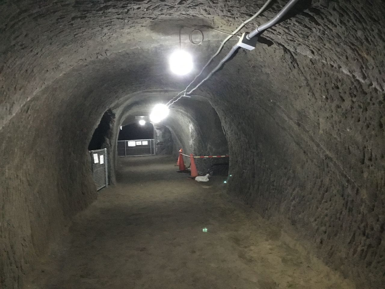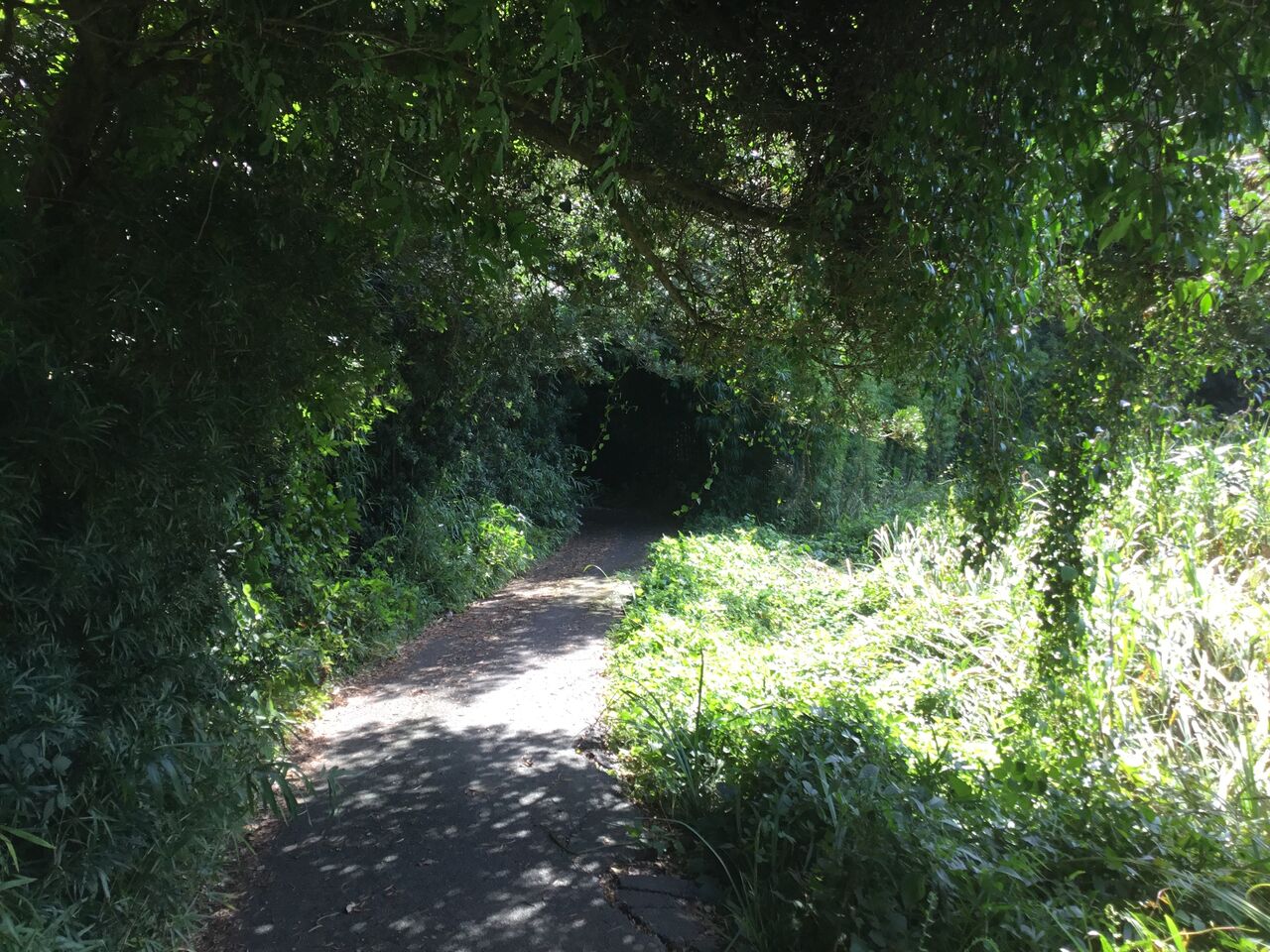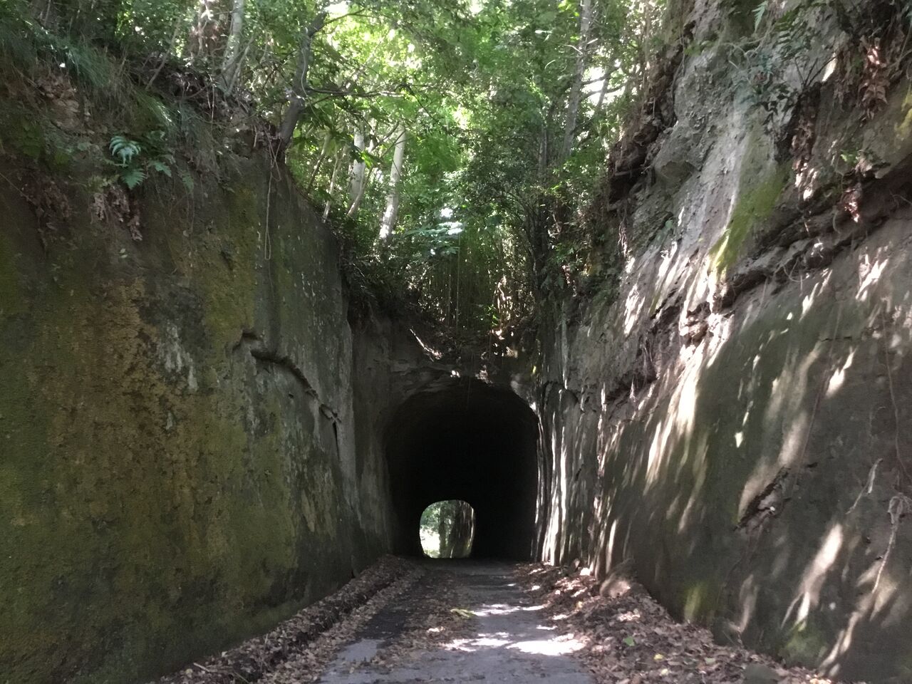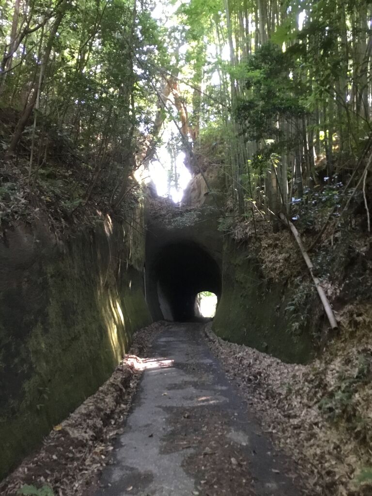 掩体壕を東から新茂原駅に向かって歩いて来ましたが、駅の反対側、内陸側の丘陵地に地下壕施設が残っているらしいので、足を伸ばしてみました。田園が終わり丘陵地に入ると、切り通しと素掘りの隧道がお出迎えです。