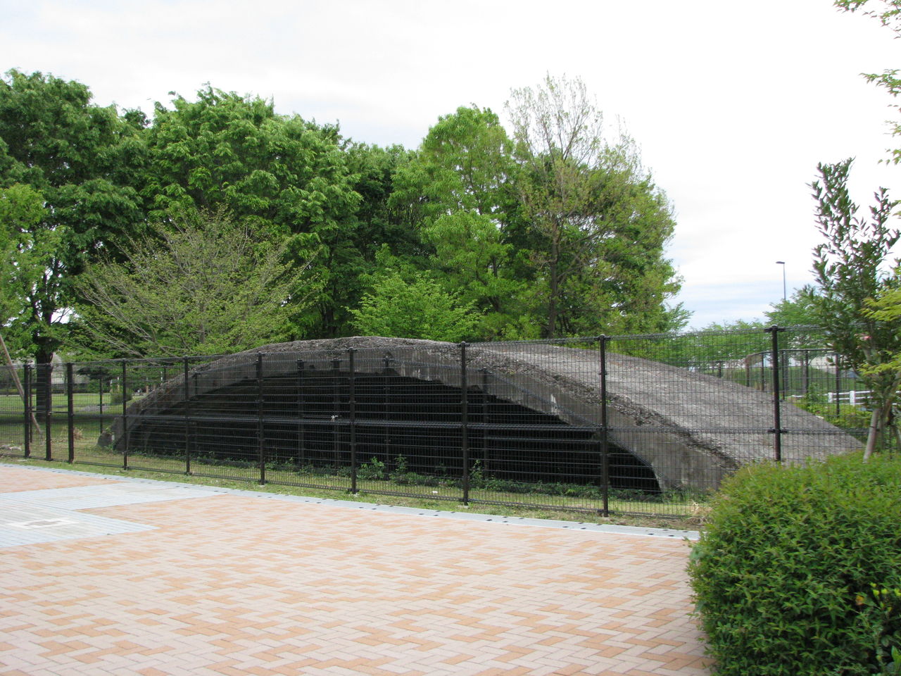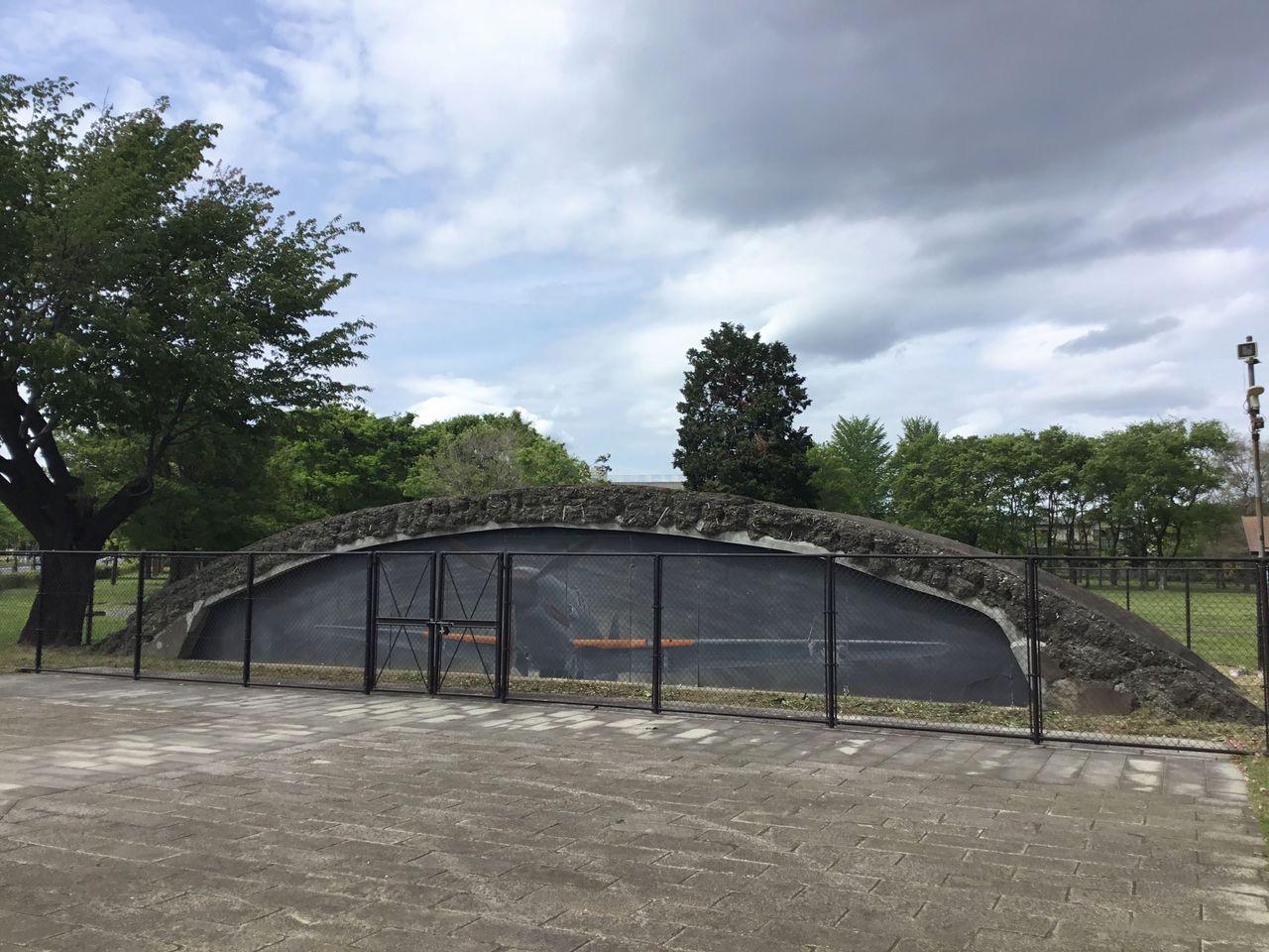周辺には多くの掩体壕が残されています。掩体壕とは当ブログでも何度か取り上げて来ましたが、空襲から航空機を守るための格納庫。分厚いコンクリートで覆われ、なおかつ爆撃機に発見され辛くするようカモフラージュされていました。