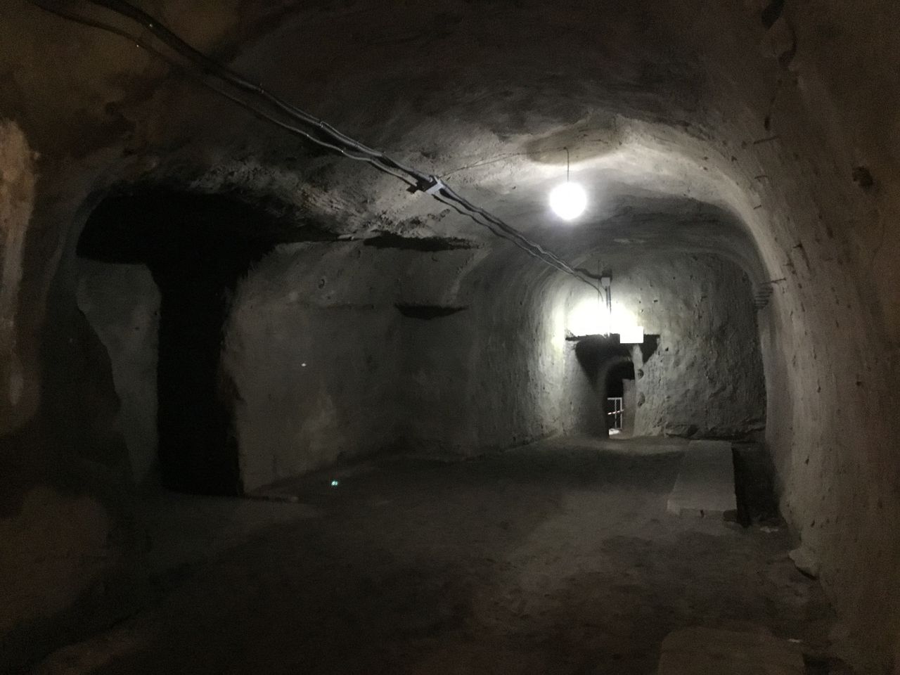 こちらの掩体壕は完全に民家の裏手になっているため、御主人に許可を取り住宅の裏へ入らせていただきました。飛行場建設には充分な重機もないまま、主に朝鮮人の徴用工などによる人海戦術で進められ、近隣の長生中学校や茂原農学校の生徒たちまで駆り出されたそうです。