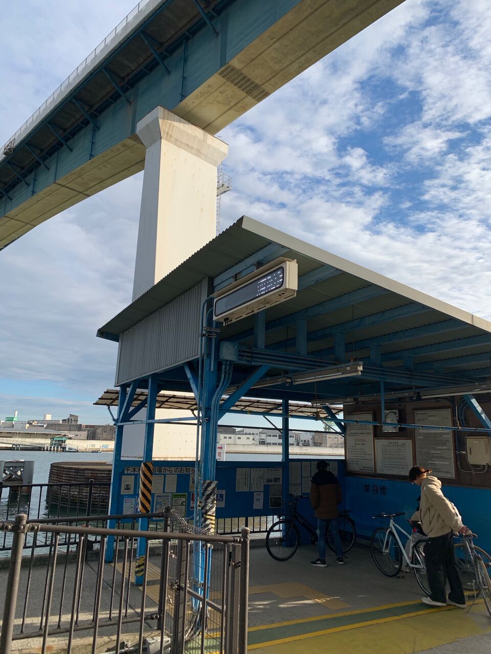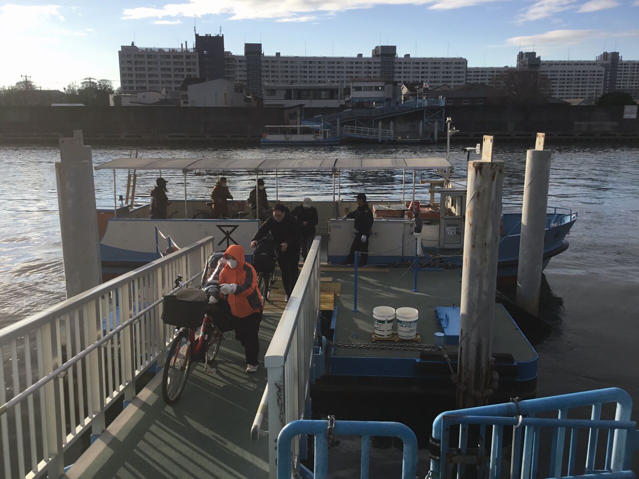 船はまた利用者を乗せて対岸へ戻ります。工業地帯や住宅街が多いですが、大阪の川や巨大な橋を眺めながらのサイクリングもなかなかなものです。