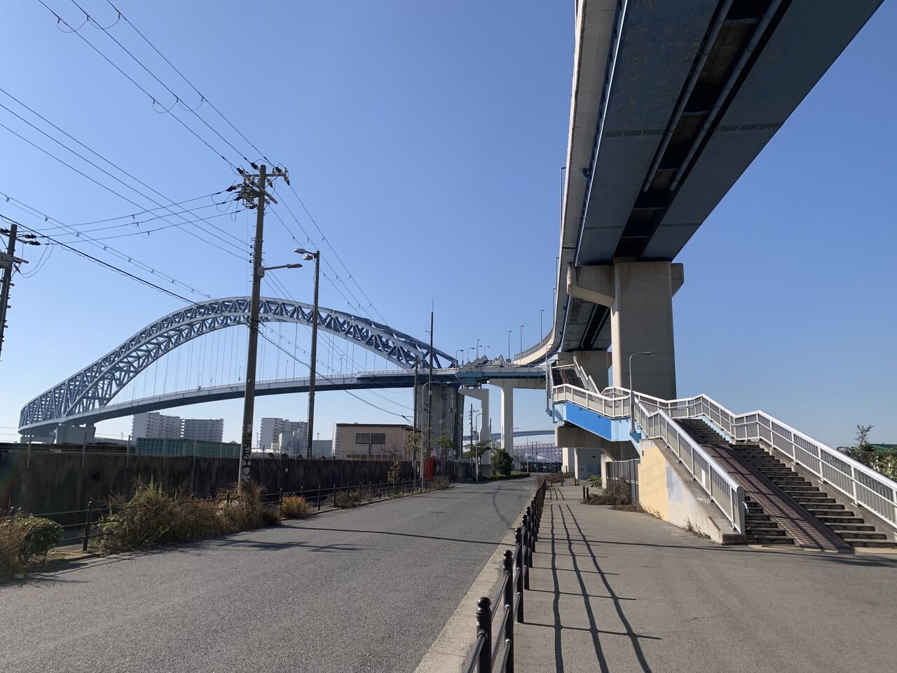 ここからは運河に遮られた島地から離れ本土側を走って行きます。この木津川の南岸はかつて造船の街でした。途中、名村造船所跡地のドックの跡なんかもあります。このドックは1970年まで使われていましたが、もっと大型の船を造るために佐賀県の伊万里湾へと移転して行きました。