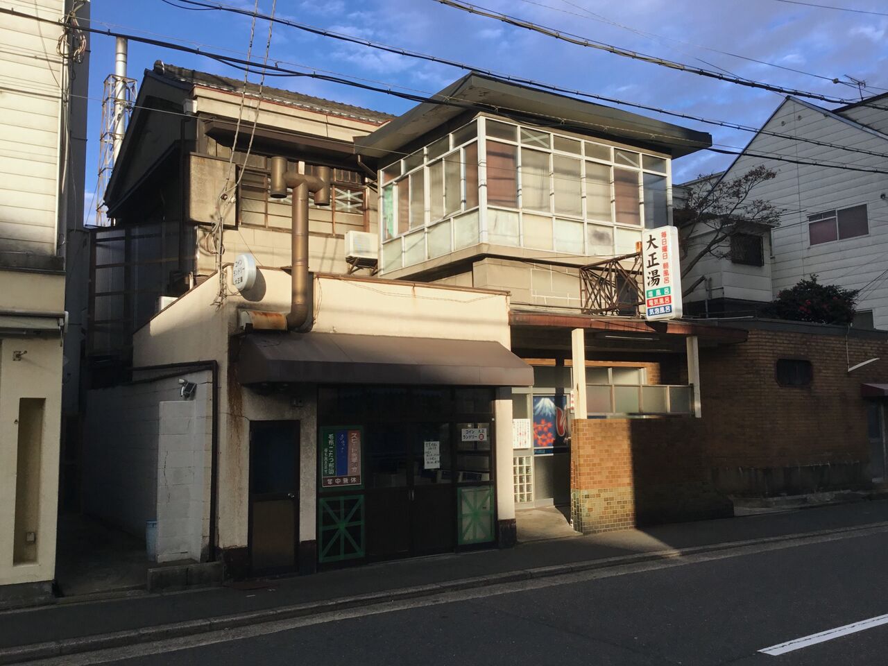 さて、渡船巡りを終え大正駅のサイクルポートへ自転車を返しに行きます。途中こんな素晴らしい外観の銭湯が。現役のようですし今思えば入っとけば良かった。
