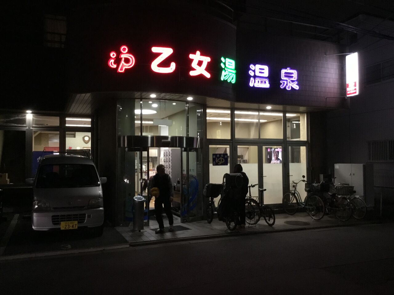 明日仕事と言うことで、自販機で買った暖かいお茶で手を温めながら温泉銭湯の「乙女湯温泉」へ。