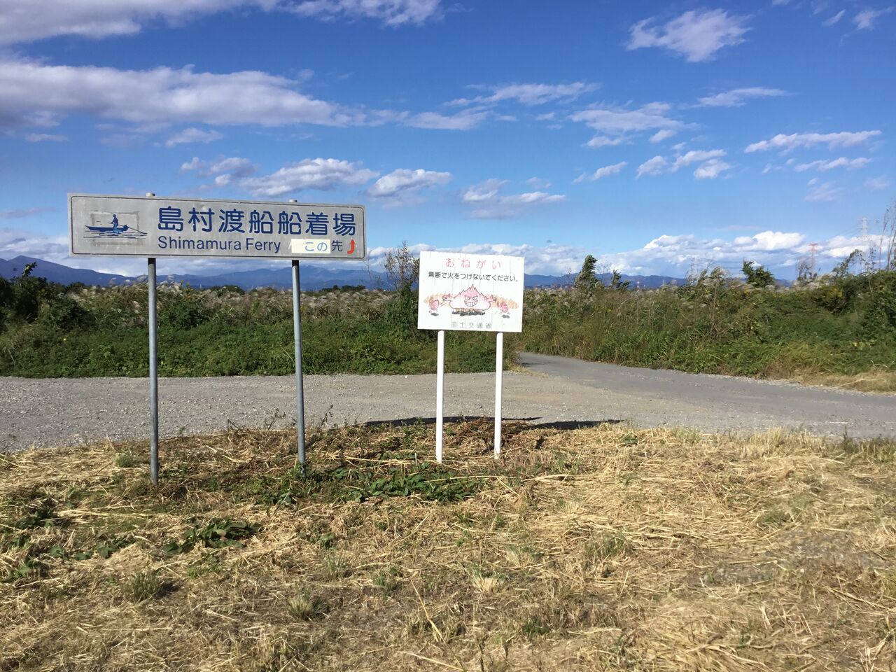 島村集落の北側には利根川が流れています。河川敷の方へ歩くと島村渡船船着場の表示が。